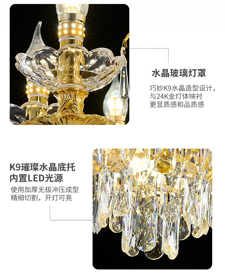 • 크리스탈 샹들리에 - 8개 헤드 - 3색 디밍