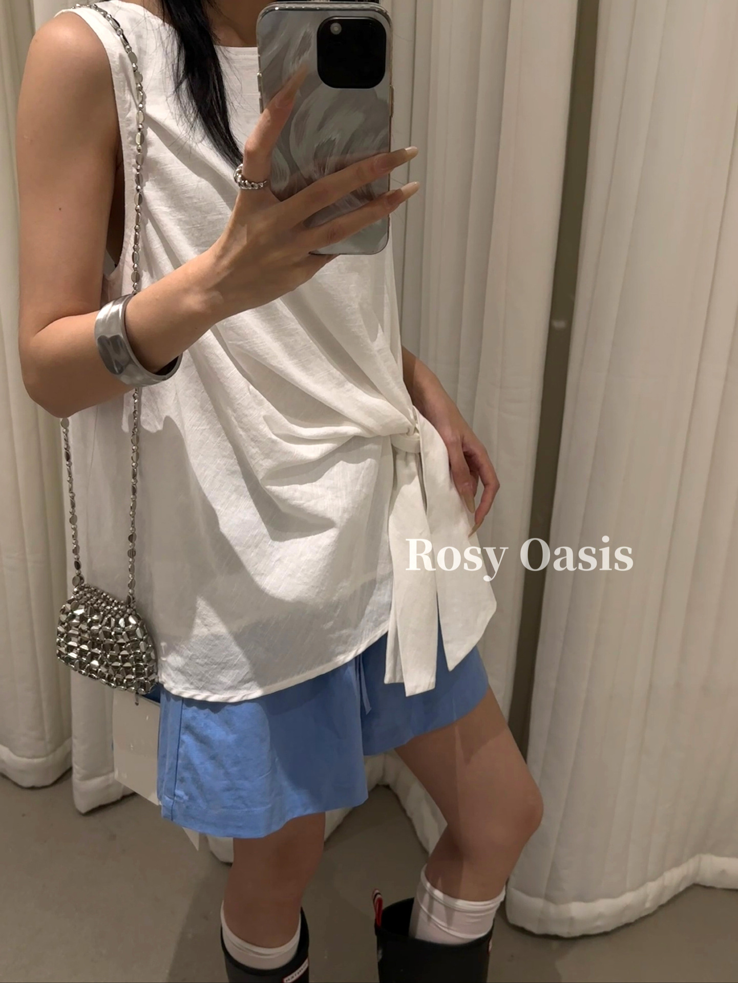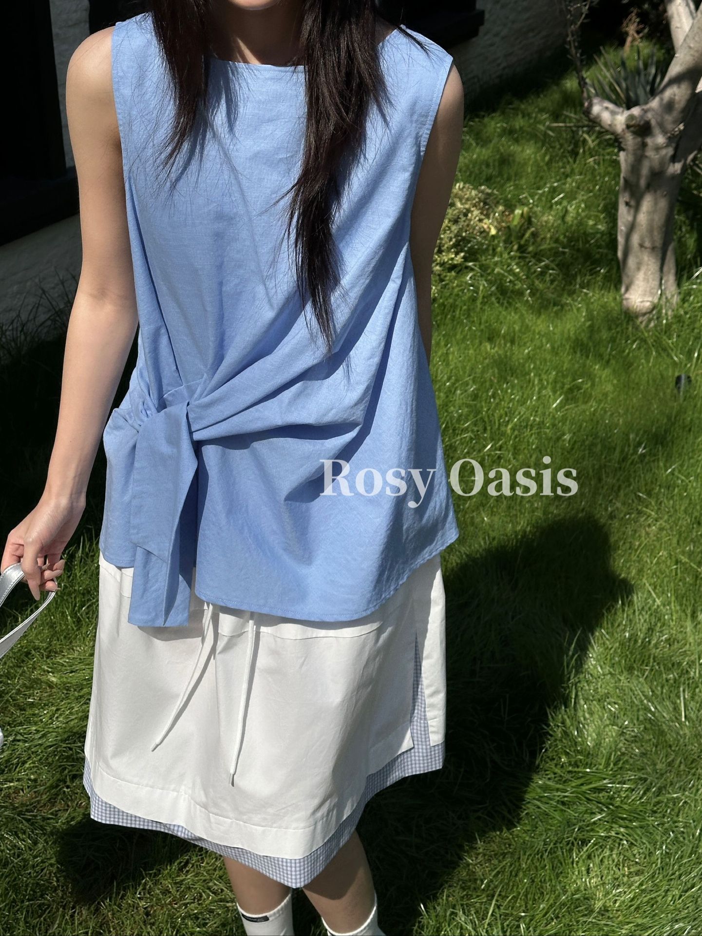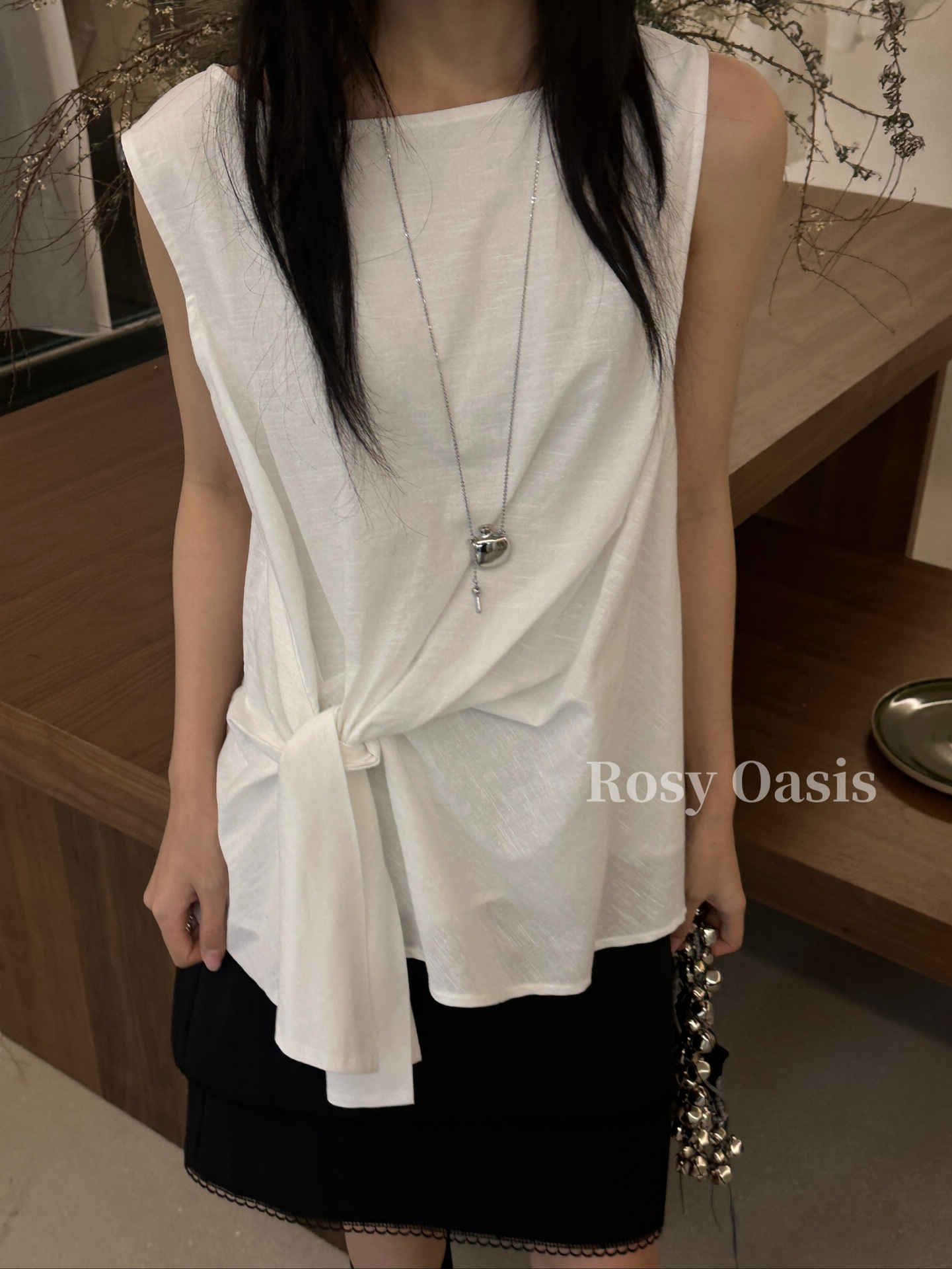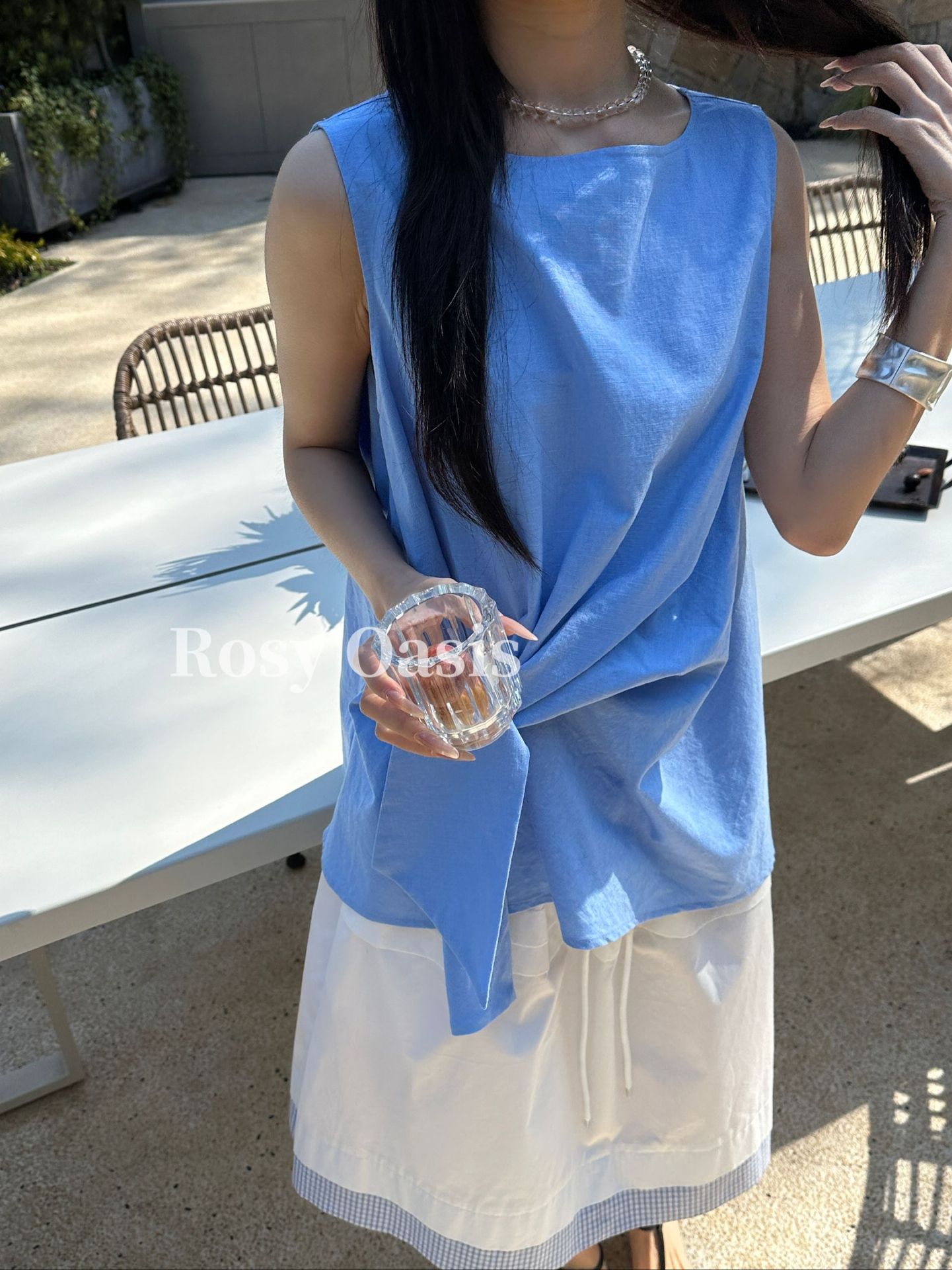 여름 예술적 느슨한 면화 및 리넨 조끼 한국 불규칙한 주름 캐주얼 셔츠 민소매 여성 Y5466