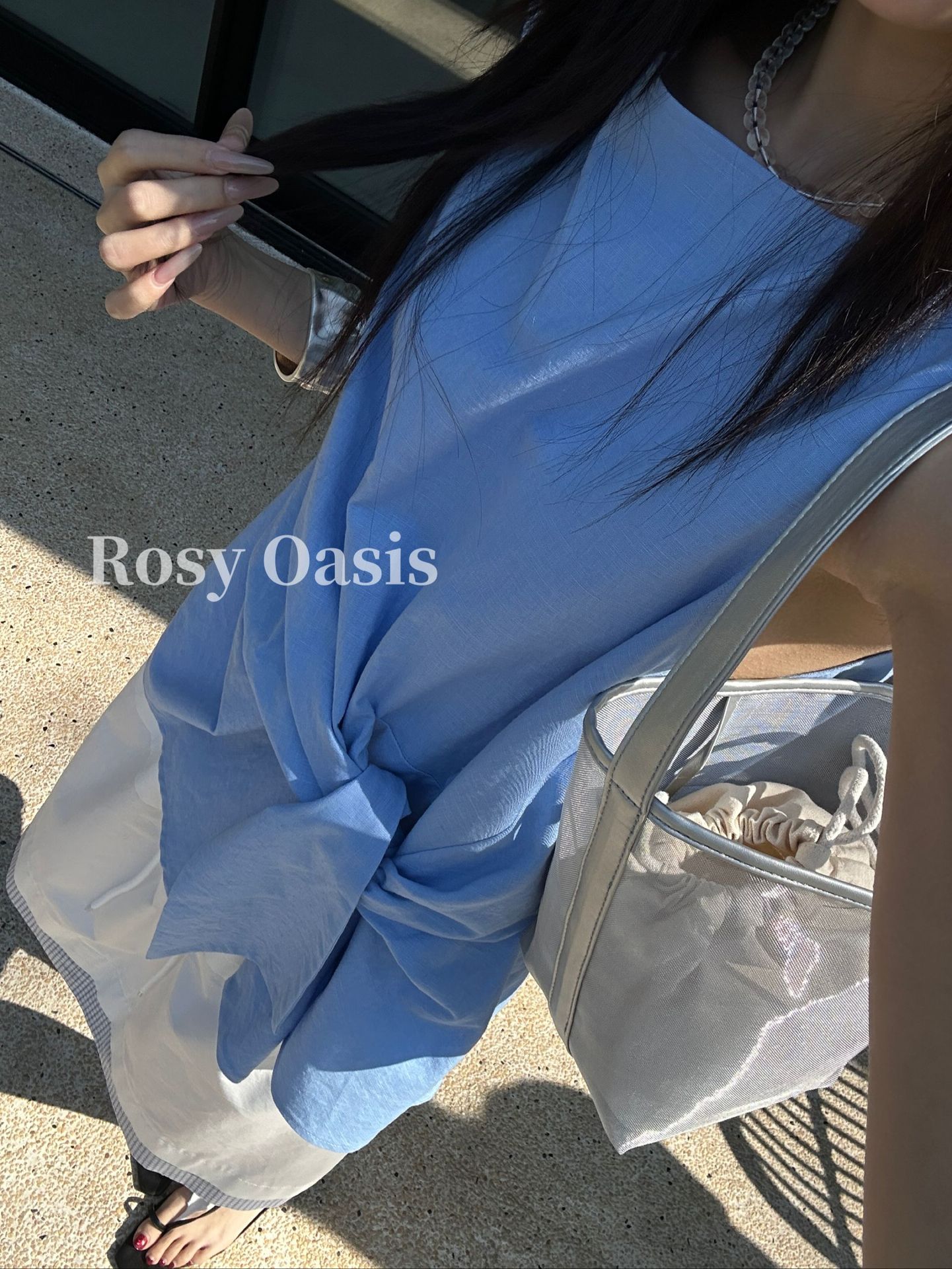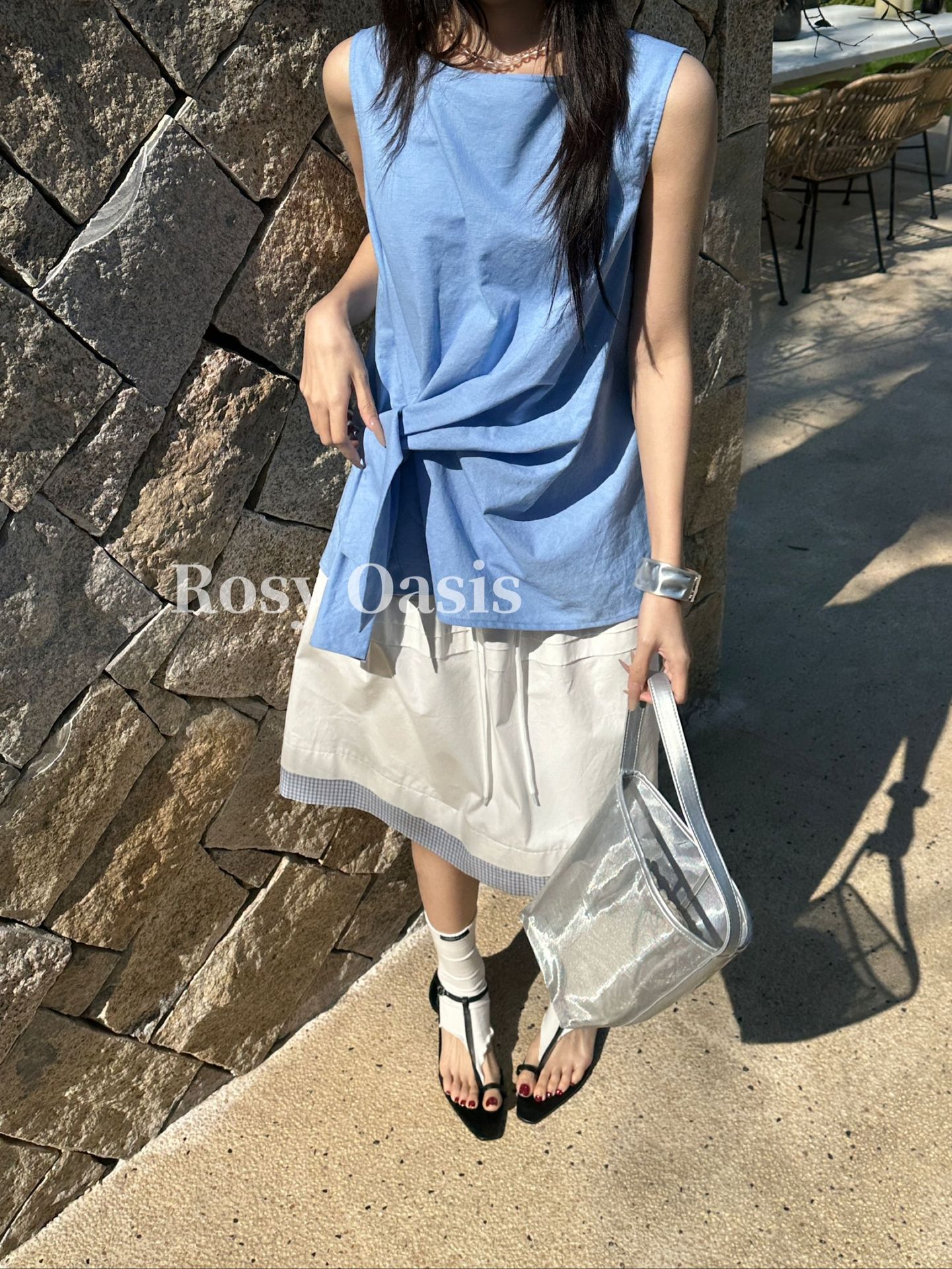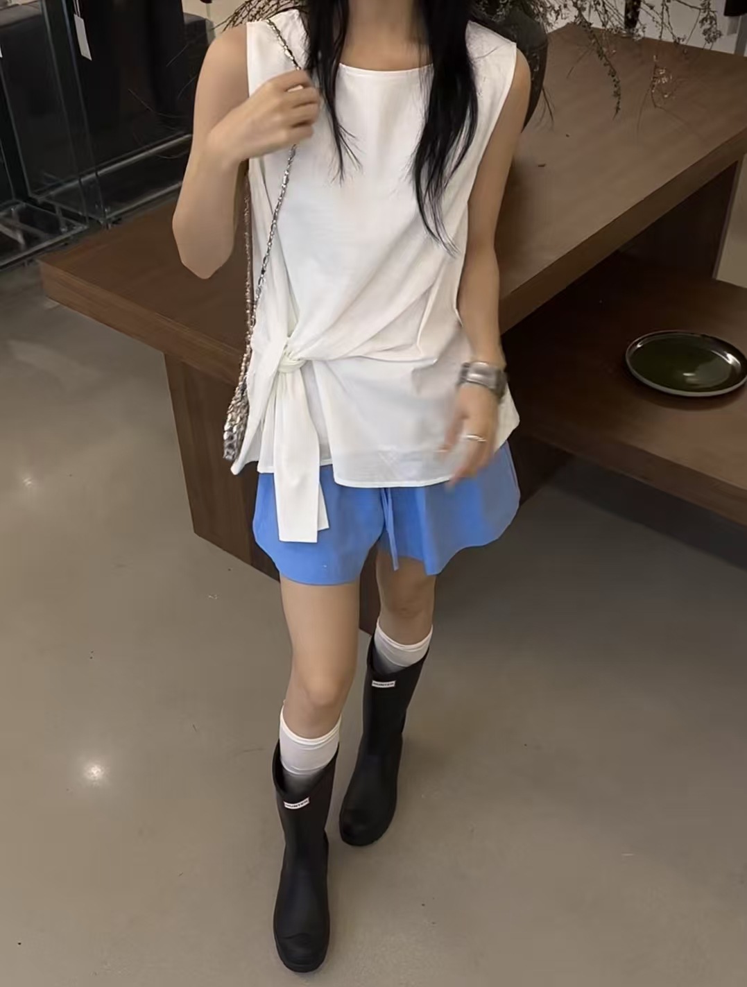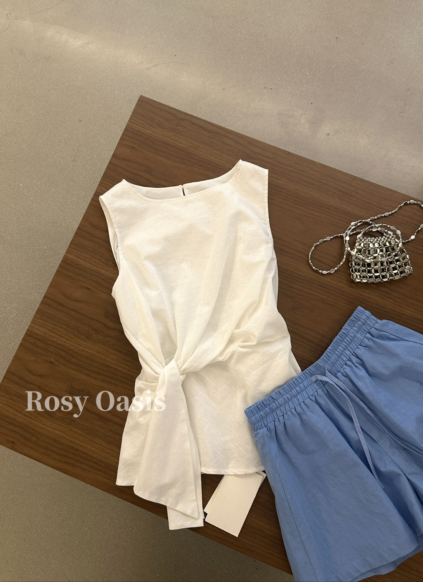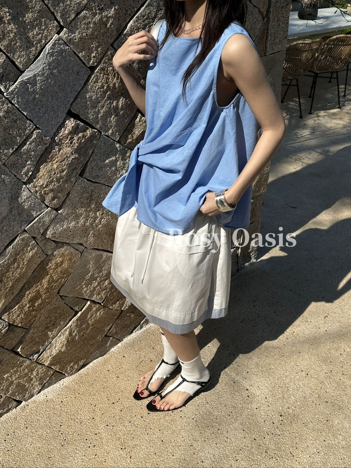 여름 예술적 느슨한 면화 및 리넨 조끼 한국 불규칙한 주름 캐주얼 셔츠 민소매 여성 Y5466