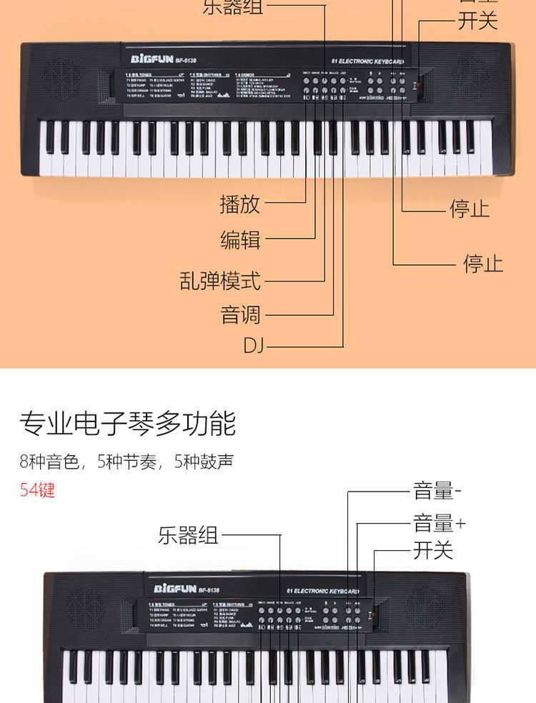 어린이 37 키 전자 피아노 초보자 61 키 피아노 아기 음악 소년 소녀 장난감 국경 도매 배우기스토어 가기