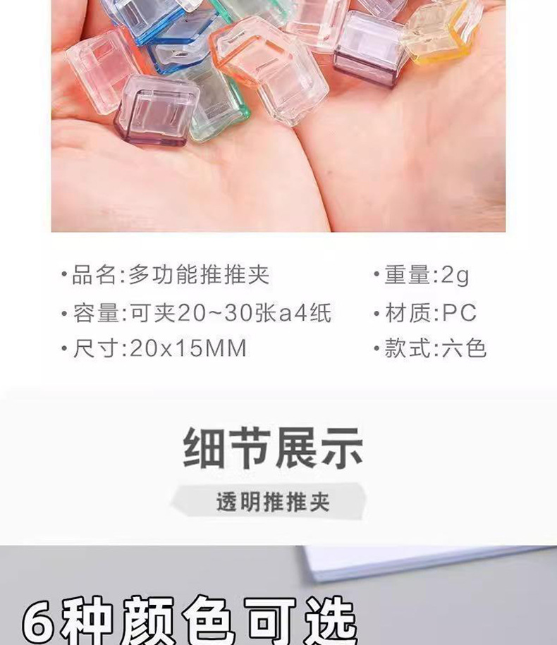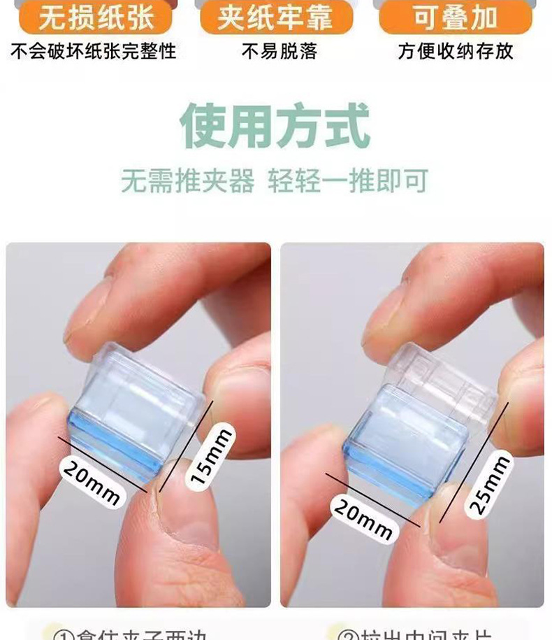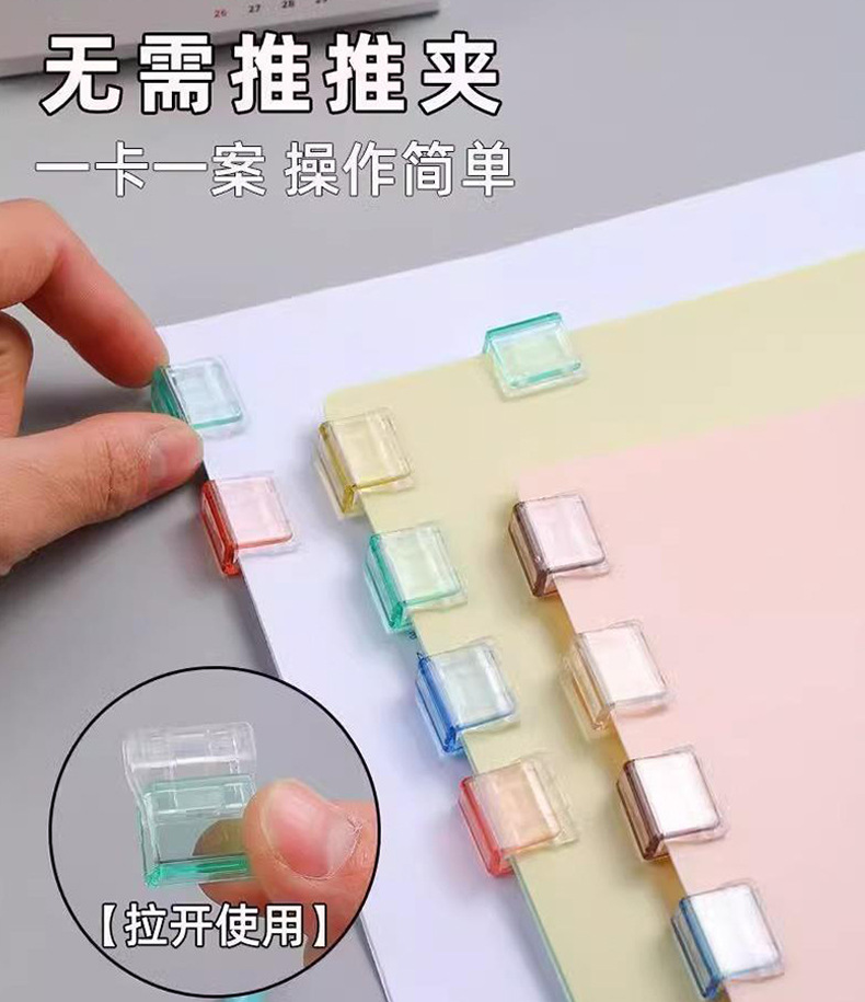 투명 푸시 클립 푸시 클립 시험지 보관 및 제본 사무용 문서 문구 고정 소형 클립 스왈로우 테일 클립
