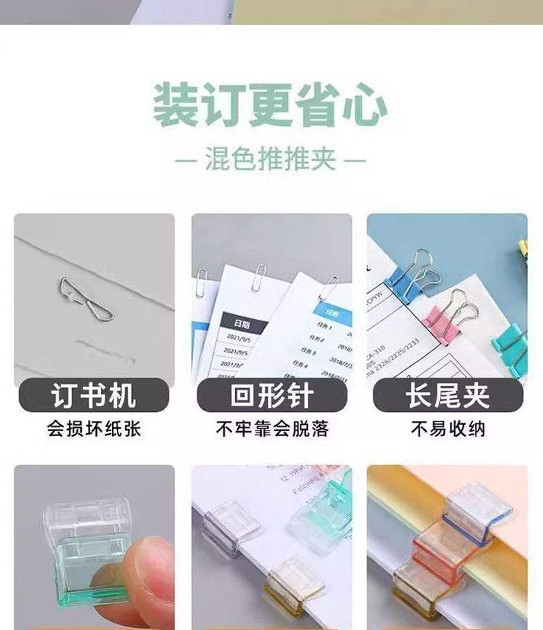 • 업그레이드되고 두꺼워진 [50개] 강력한 클램핑력丨 컬러풀한 푸시 클립