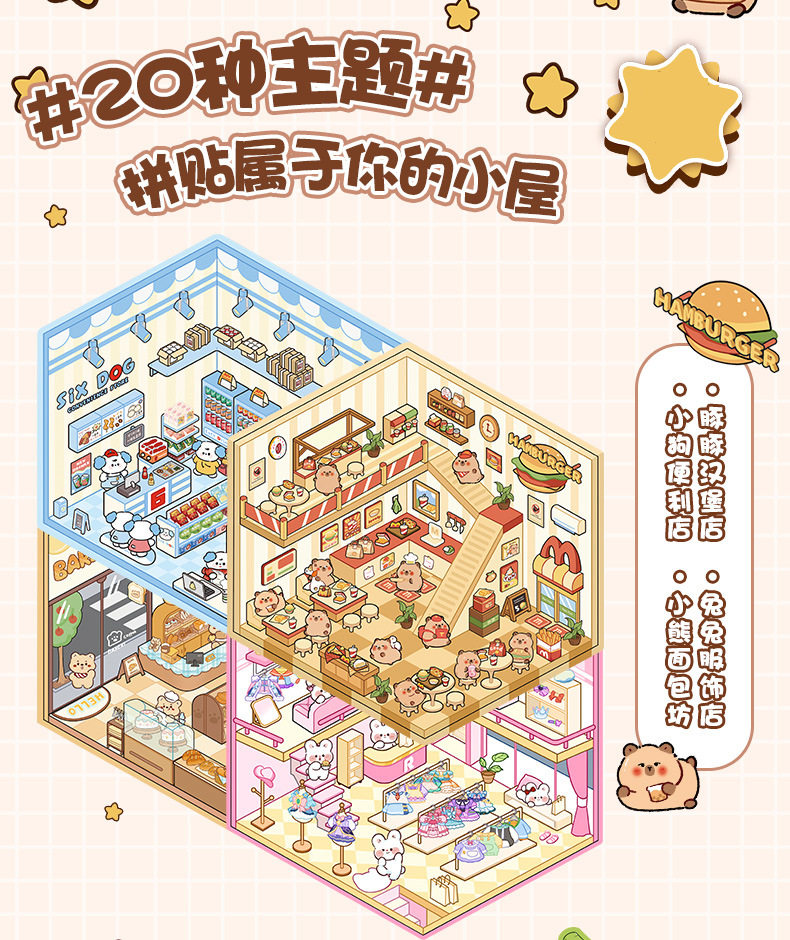 20 3D 3 차원 객실 미니어처 장면 어린이 DIY 손 계정 장난감 스티커 도매스토어 가기