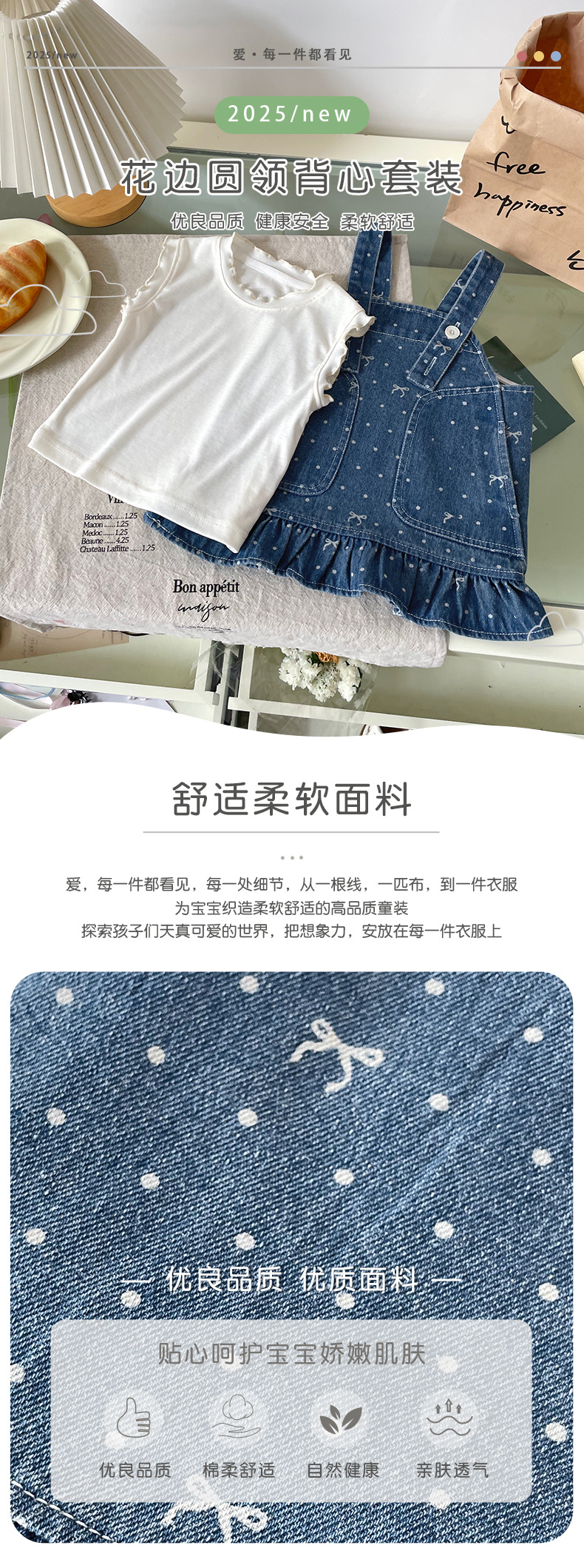 DZ25022 여자 원피스 2025 세트 여름 한국 레이스 포인팅 폴로도트 활 데님 원피스
