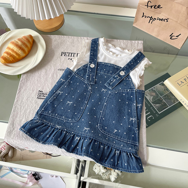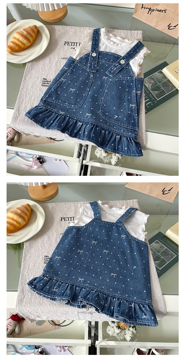 DZ25022 여자 원피스 2025 세트 여름 한국 레이스 포인팅 폴로도트 활 데님 원피스스토어 가기