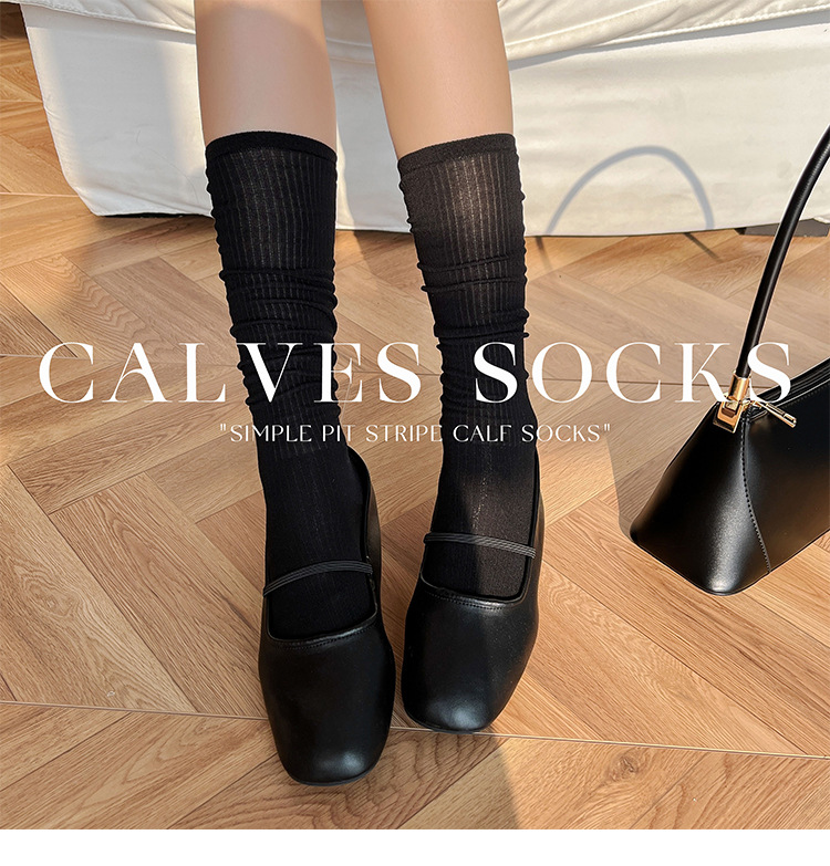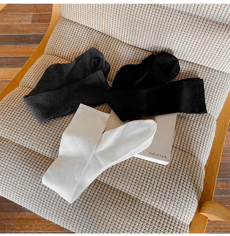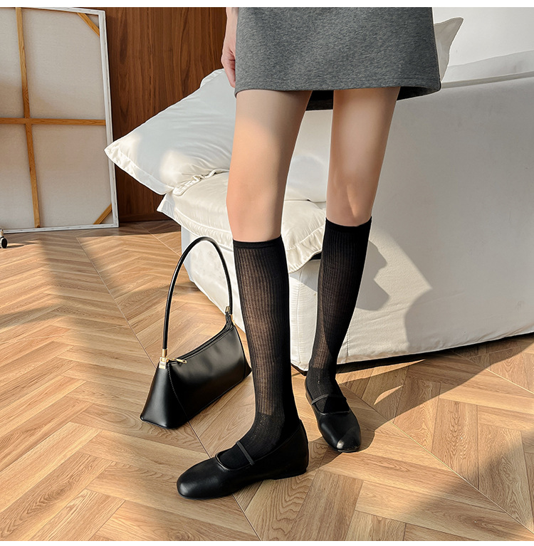 2025 양말 간단한 피트 단색 종아리 양말을 통해 여성 봄과 여름 실크 얇은 스트레칭