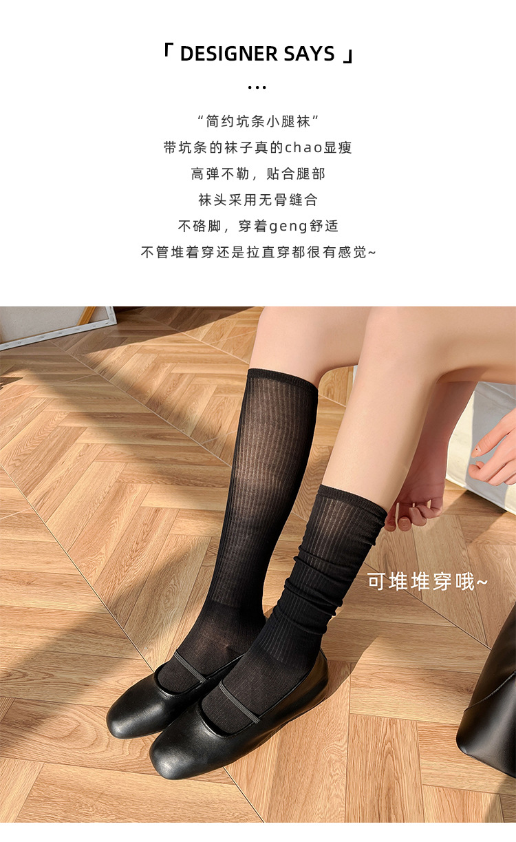 2025 양말 간단한 피트 단색 종아리 양말을 통해 여성 봄과 여름 실크 얇은 스트레칭스토어 가기