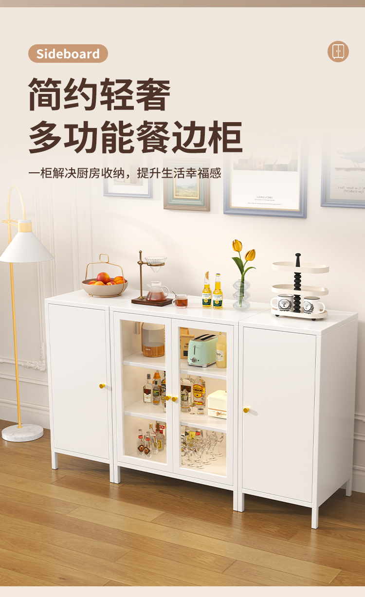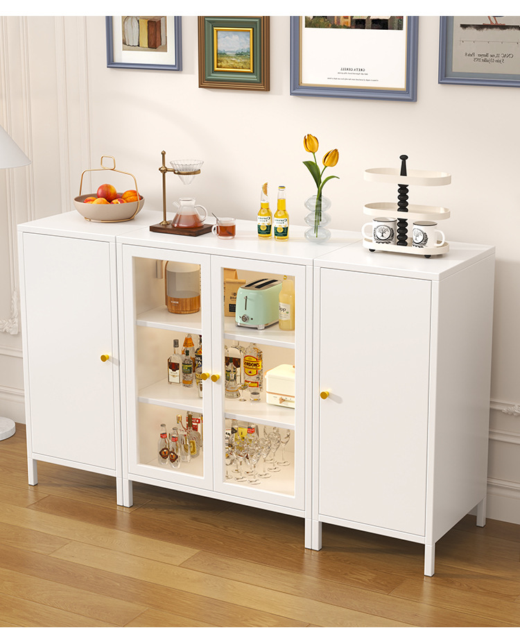사이드 보드 저장 캐비닛 철 캐비닛 주방 찬장 간단한 유리 도어 저장 캐비닛 다기능 저장 캐비닛 낮은 캐비닛