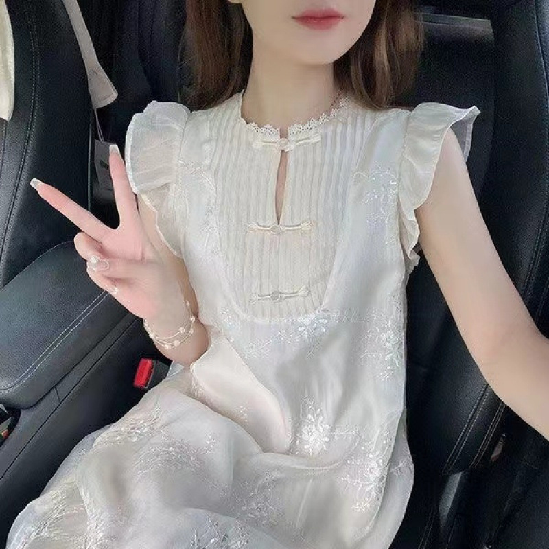 2025 Xia Xin 중국 고급 자수 원피스 플러스 사이즈 부드러운 작은 플라이 소매 긴 원피스