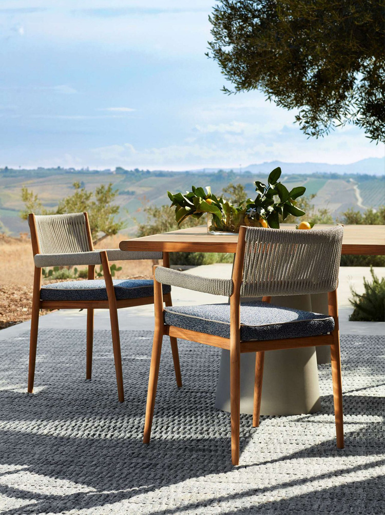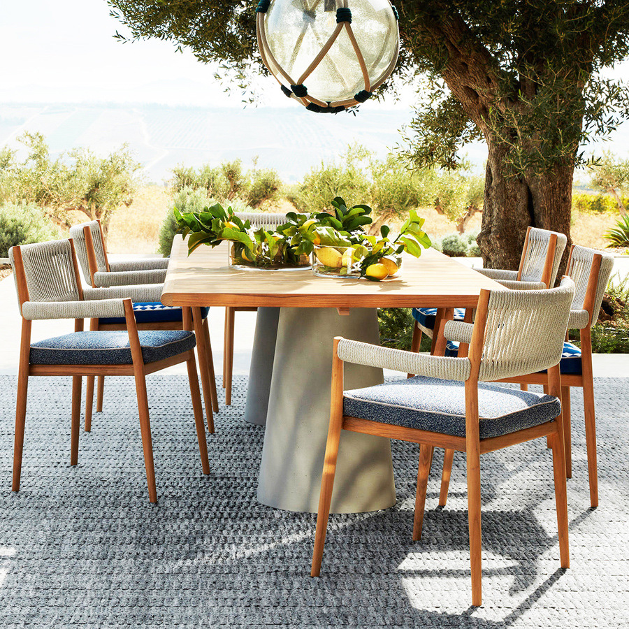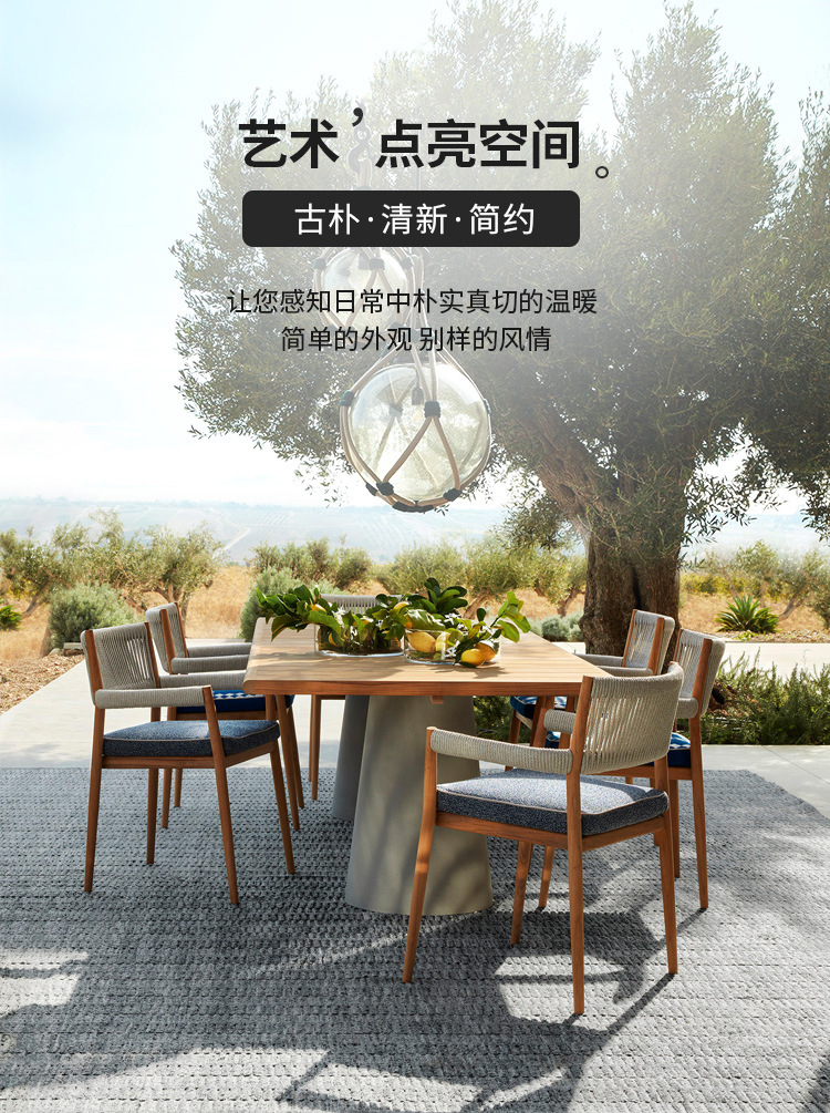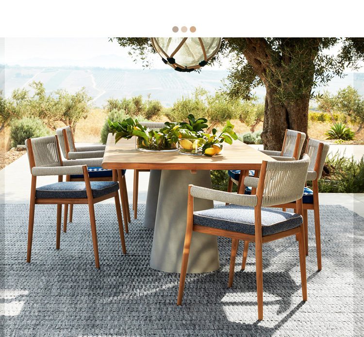 북유럽 스타일 야외 라탄 테이블과 의자 세트, 정원, 발코니용 티크 원목 긴 식탁 3종 세트, 야외 식탁 의자, 슬레이트스토어 가기