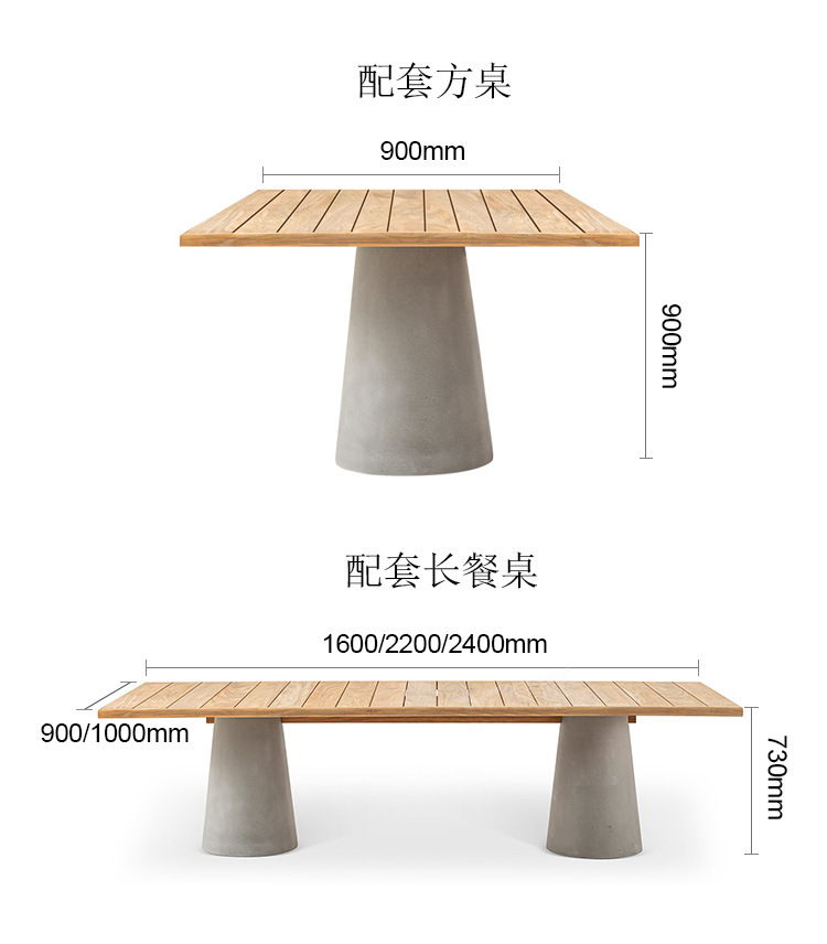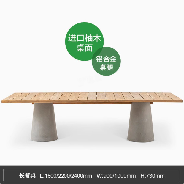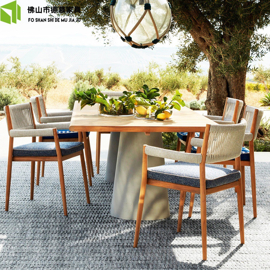 북유럽 스타일 야외 라탄 테이블과 의자 세트, 정원, 발코니용 티크 원목 긴 식탁 3종 세트, 야외 식탁 의자, 슬레이트