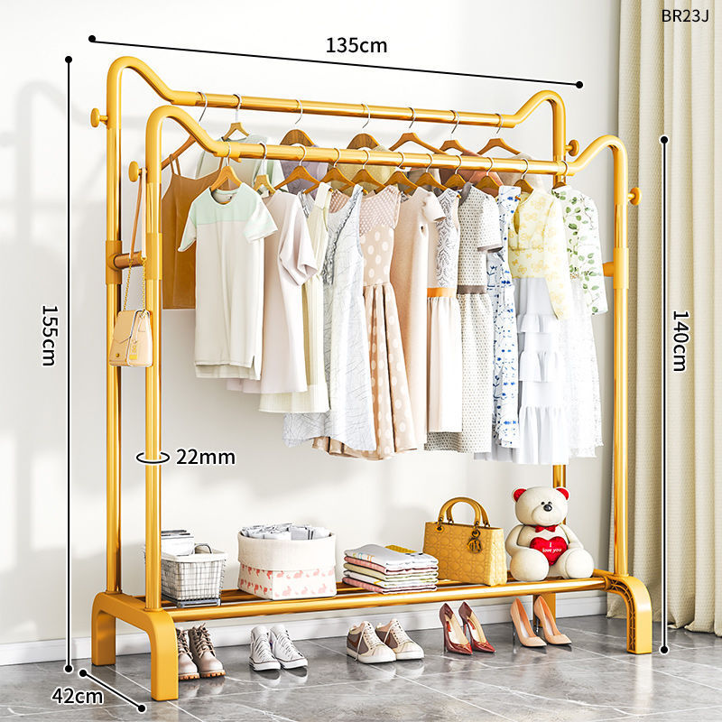 건조 랙 바닥 수직 거실 굵은 옷걸이 가정용 더블 로우 코트 랙 실내 발코니 의류 랙스토어 가기