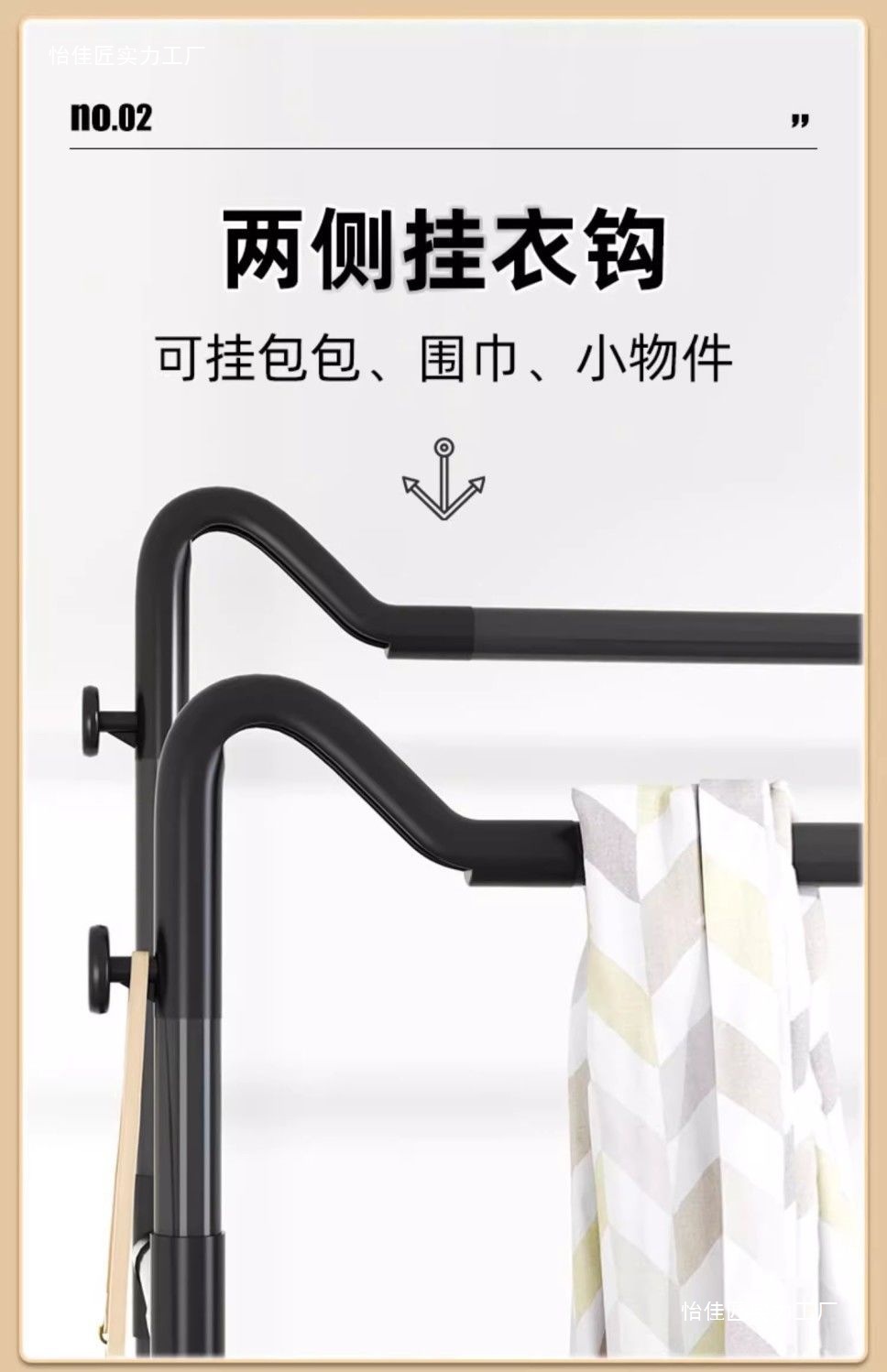 건조 랙 바닥 수직 거실 굵은 옷걸이 가정용 더블 로우 코트 랙 실내 발코니 의류 랙