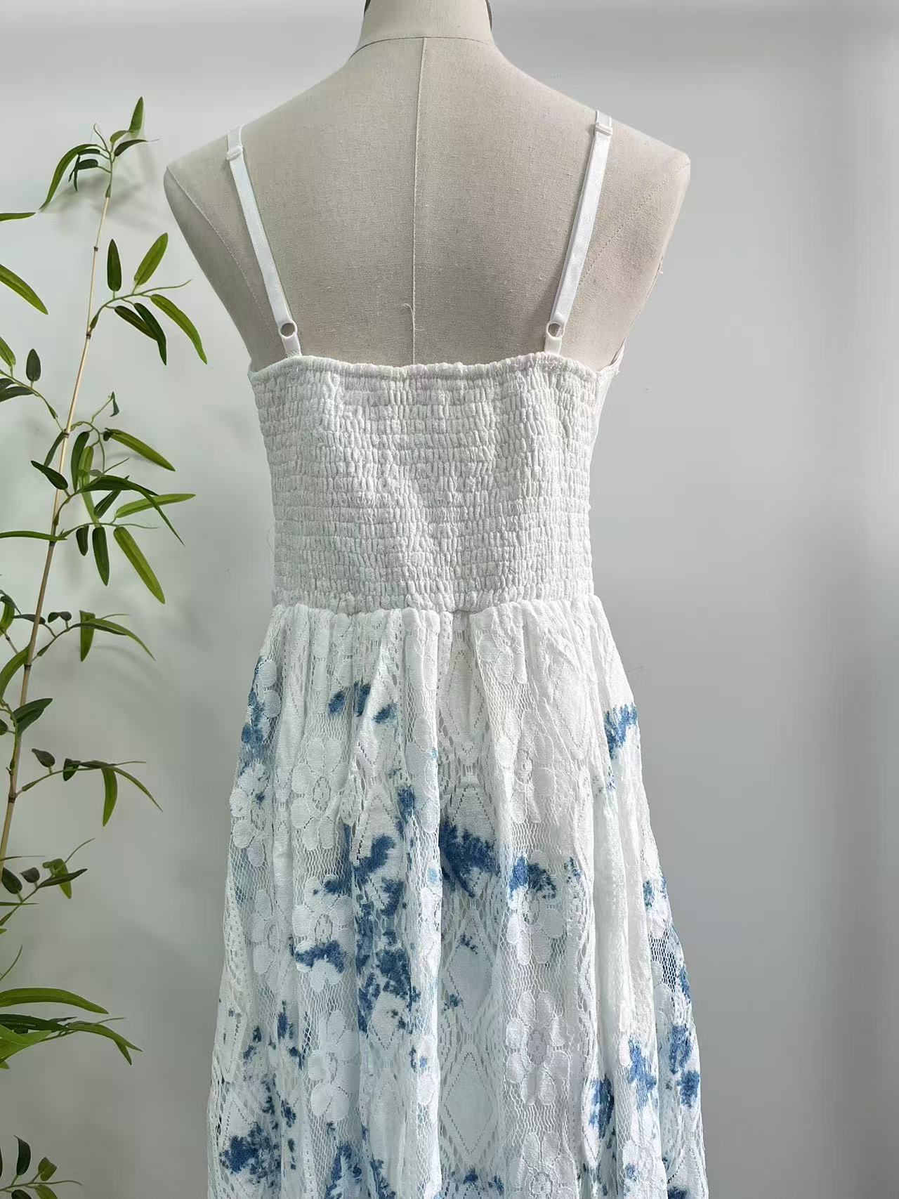 운남 다리 타이 염색 드레스 타이 염색 서스펜더 스커트 블루 염색 드레스 공장 스팟 도매 타이 염색 서스펜더 스커트스토어 가기