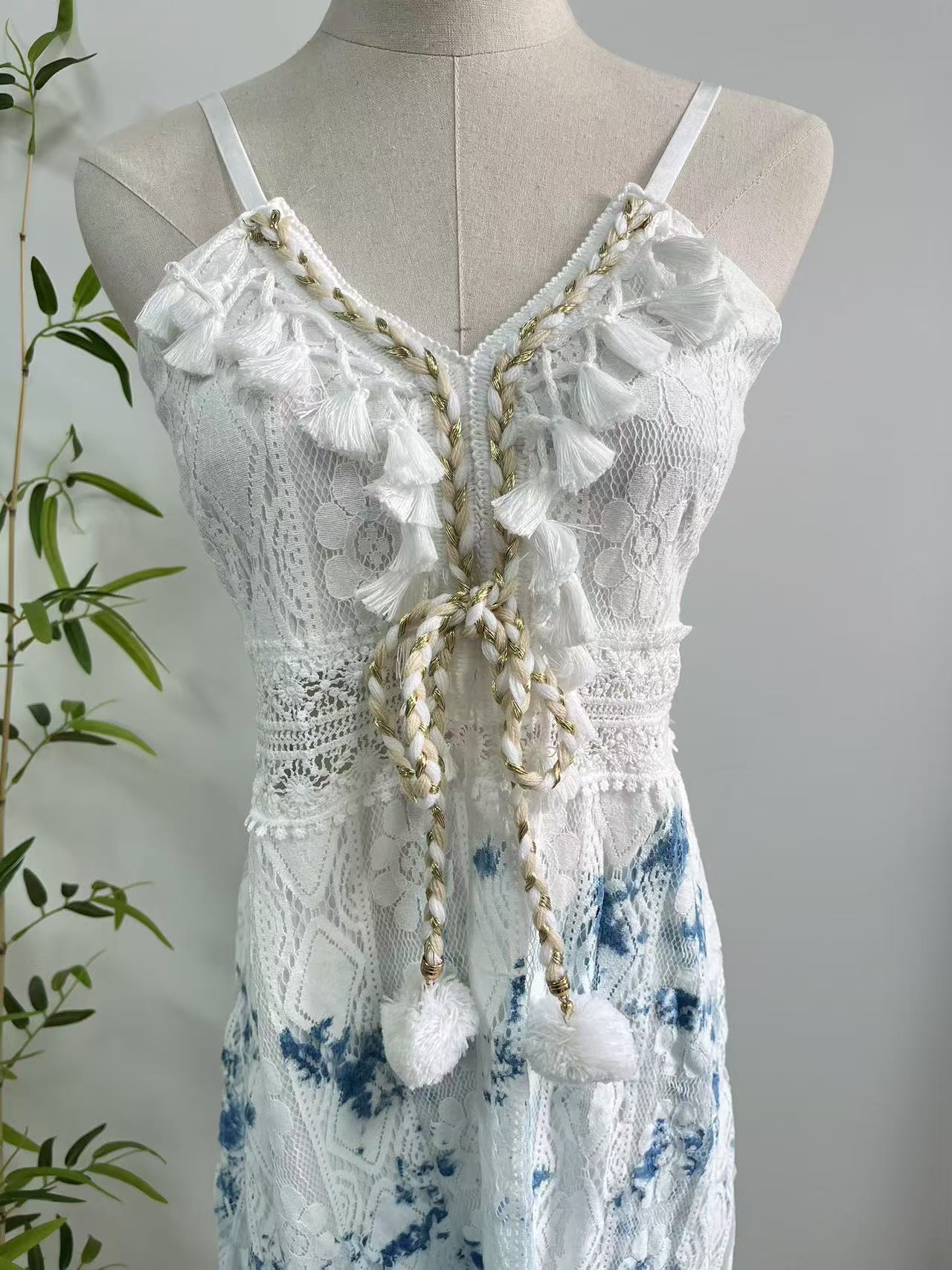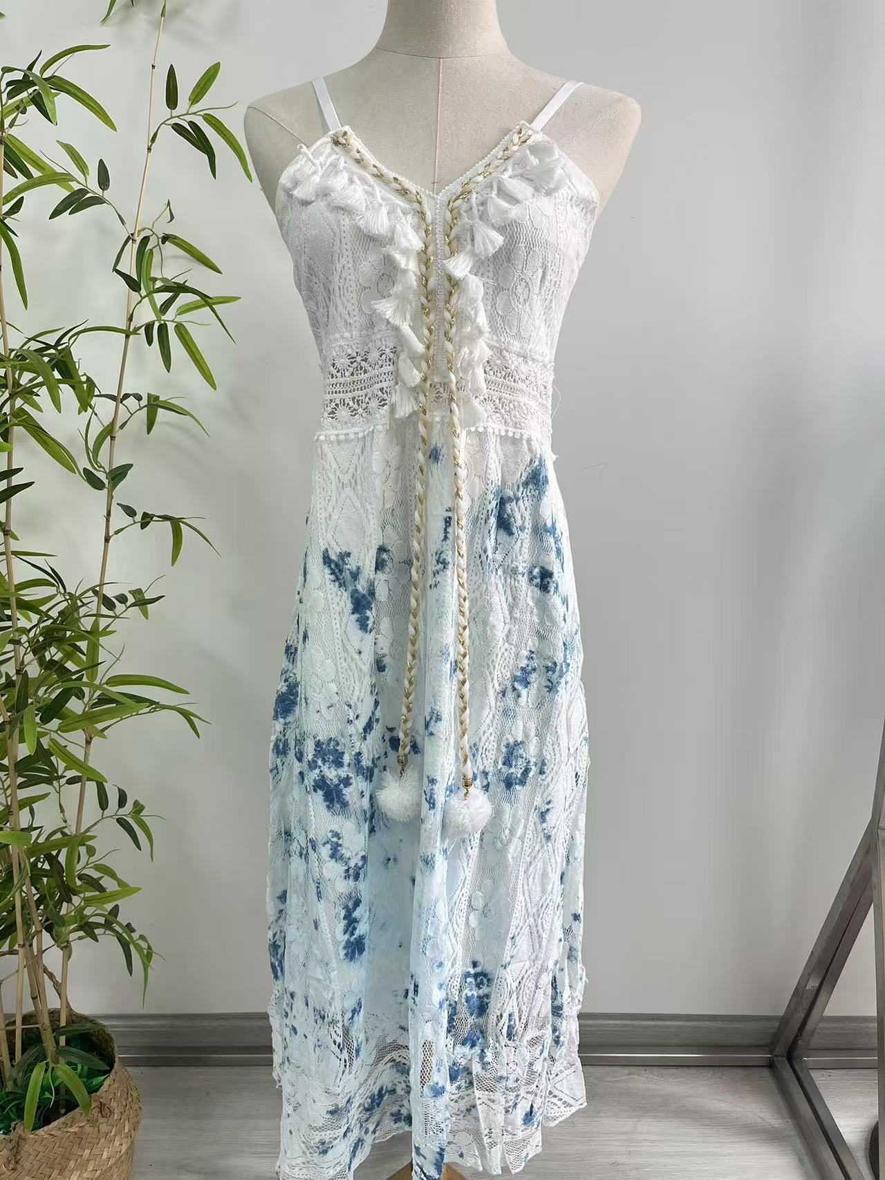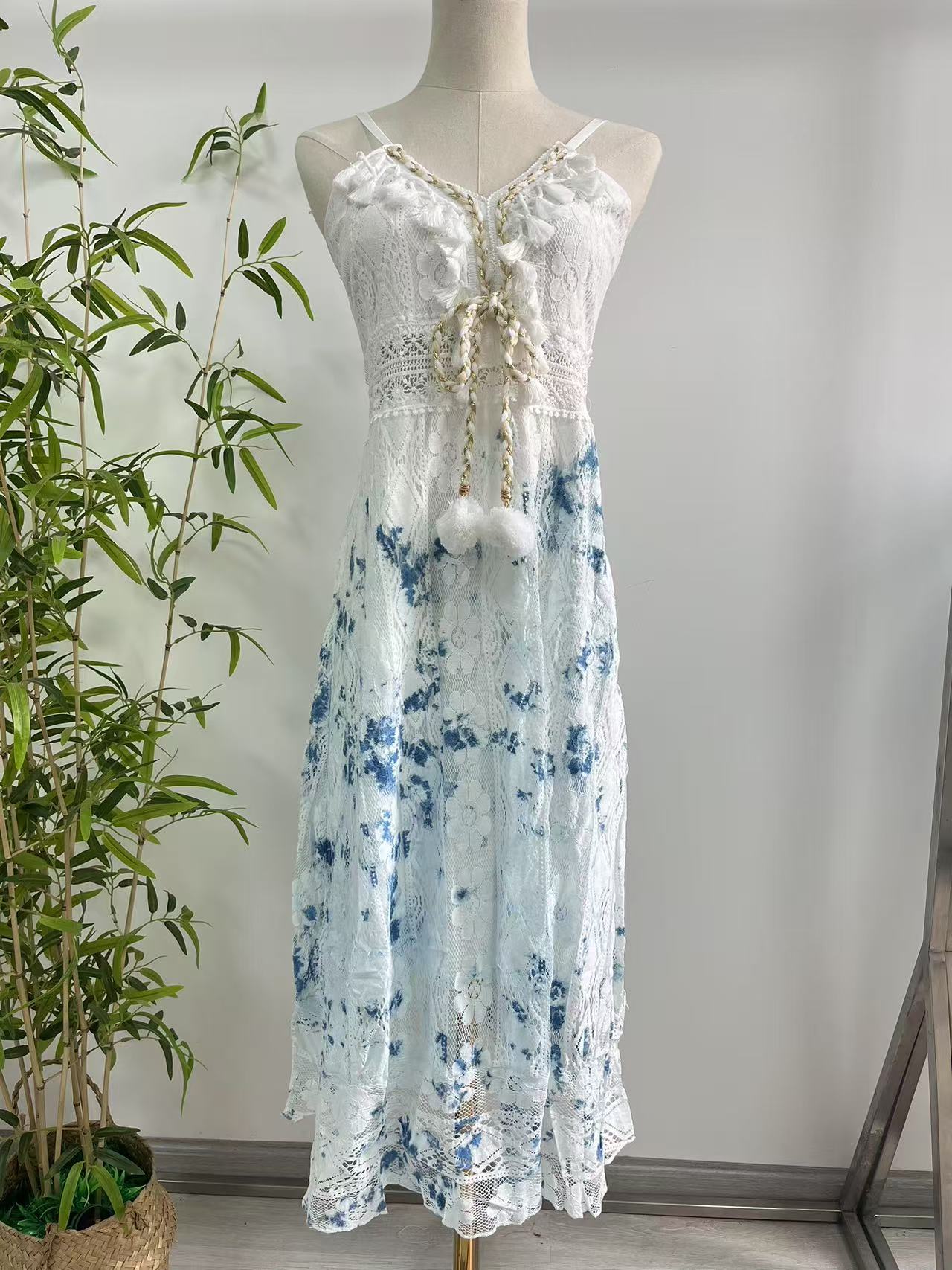 운남 다리 타이 염색 드레스 타이 염색 서스펜더 스커트 블루 염색 드레스 공장 스팟 도매 타이 염색 서스펜더 스커트
