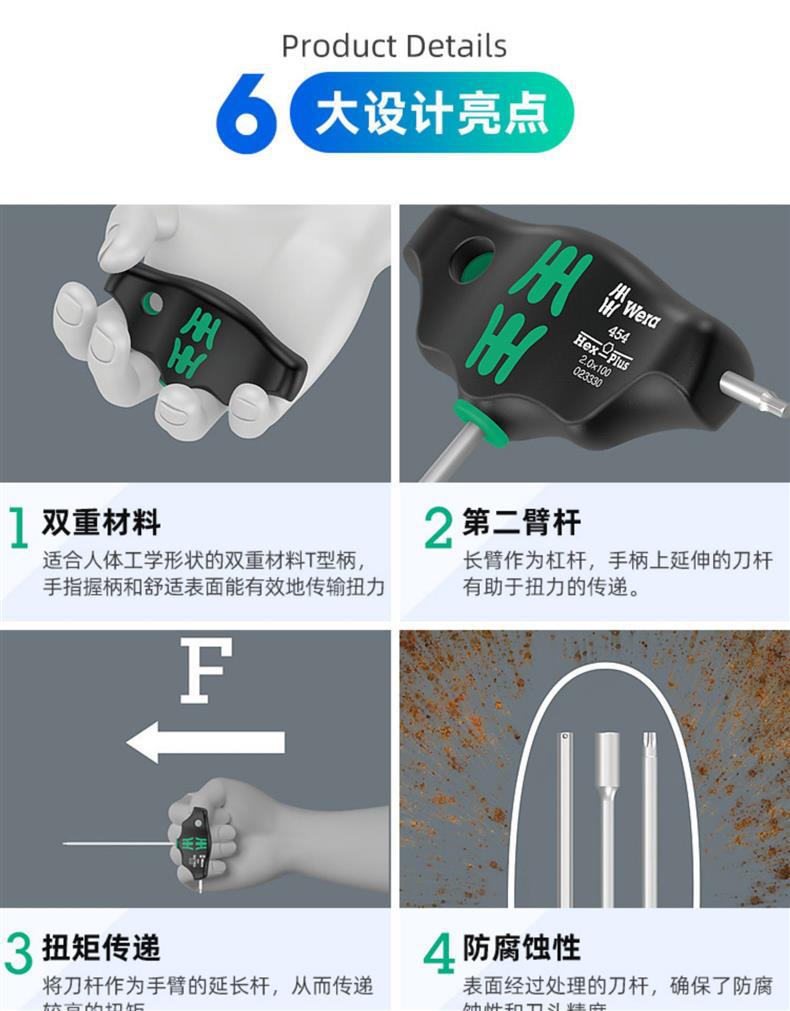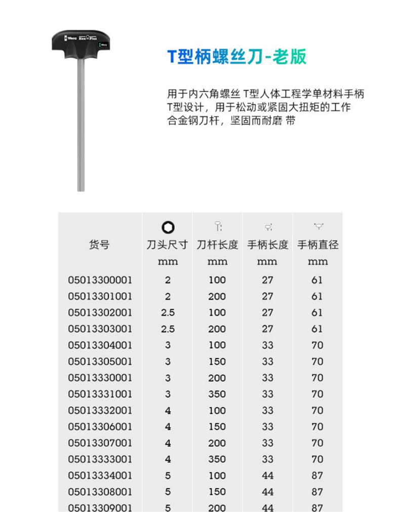 독일 wera 하드웨어 도구 454T 육각 드라이버 T 핸들 렌치 육각 키 확장형스토어 가기