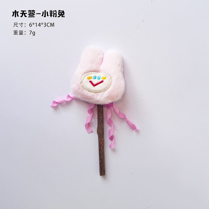 • 작은 분홍색 토끼 재미있는 고양이 스틱