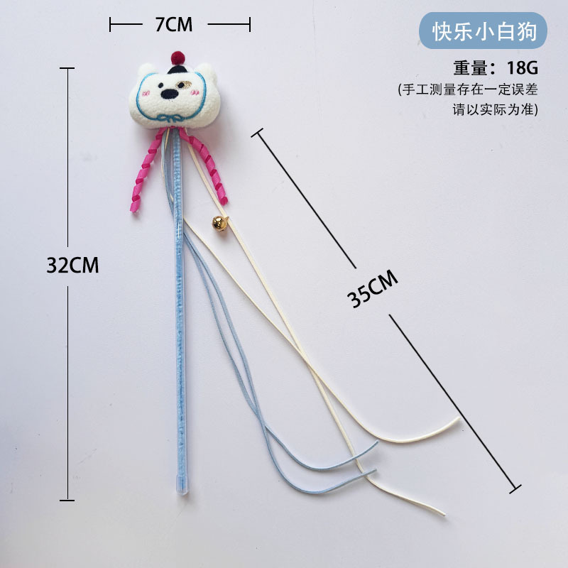 • 웃기는 고양이 스틱 행복한 작은 흰색 개