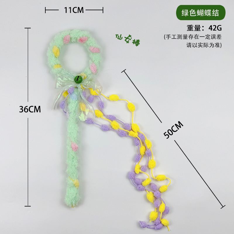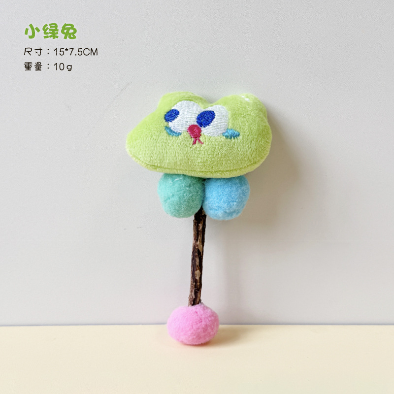 • 작은 녹색 토끼 고양이 놀리는 막대