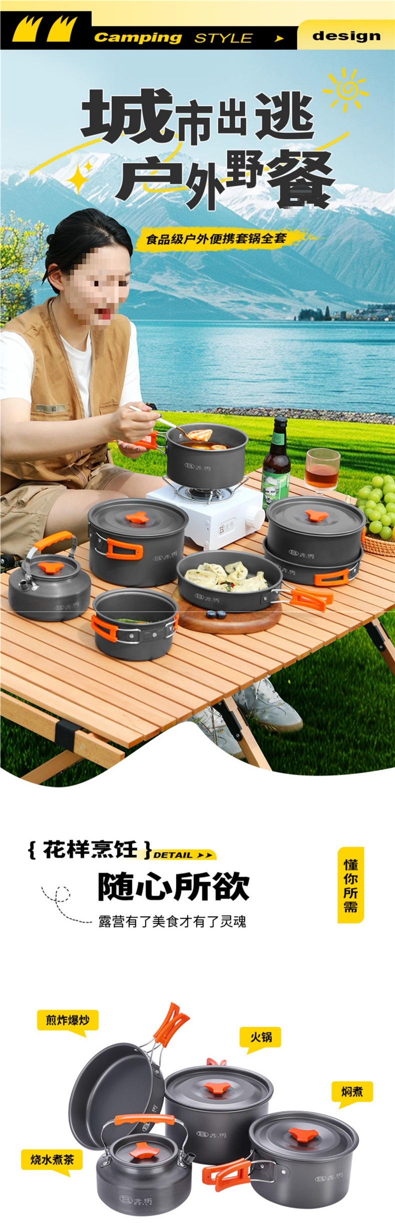 야외 냄비, 캠핑 조리기구, 카세트 스토브, 피크닉 냄비 세트, 캠핑 냄비, 휴대용 주전자, 피크닉 세트스토어 가기