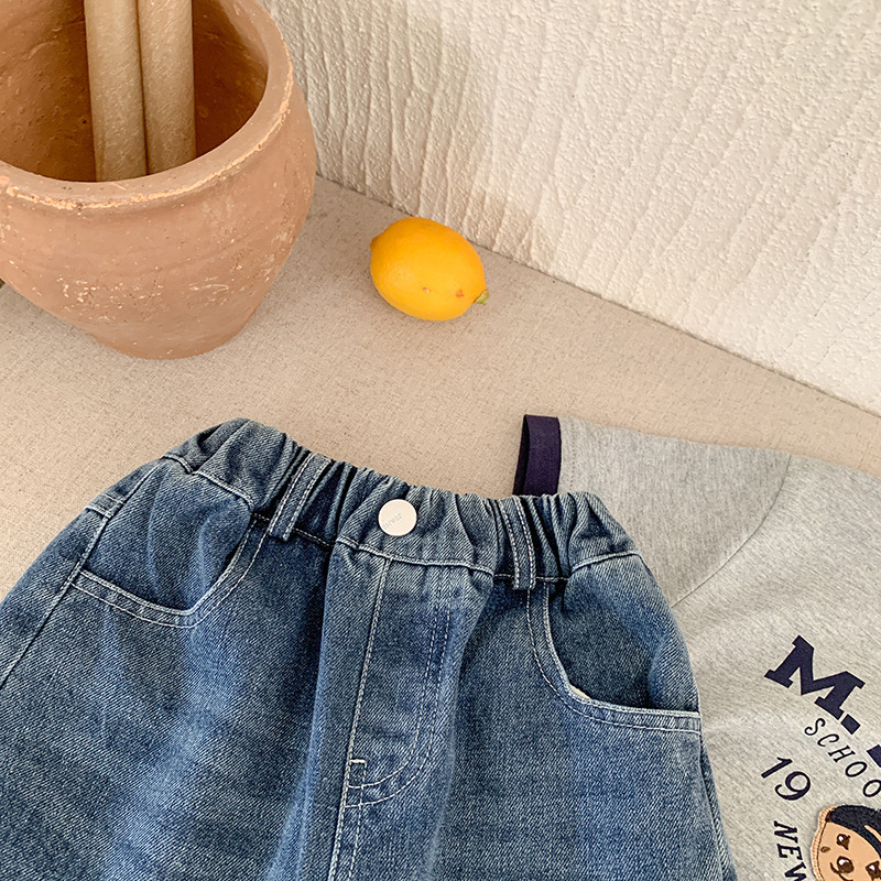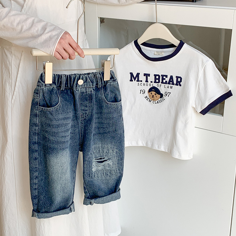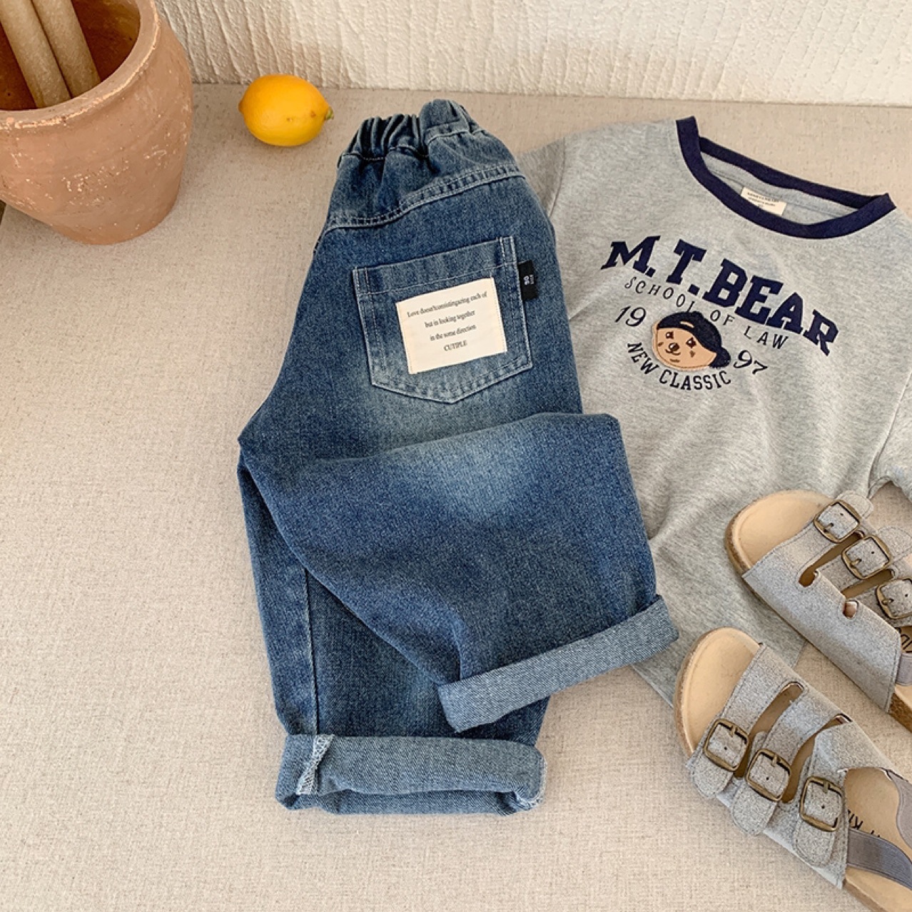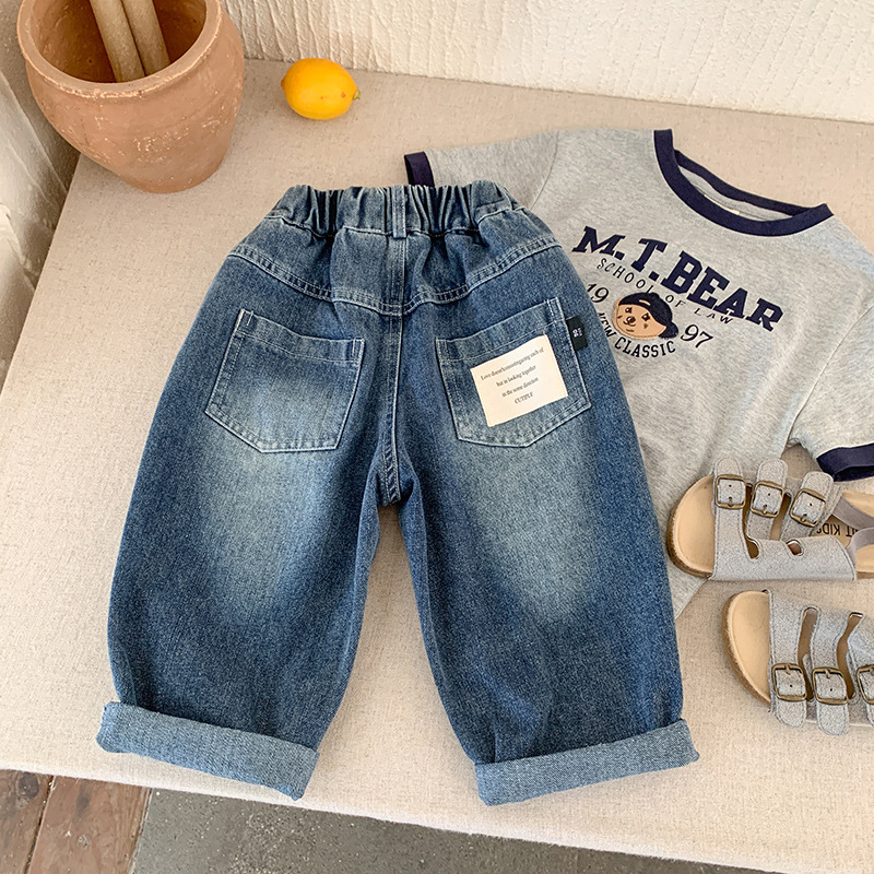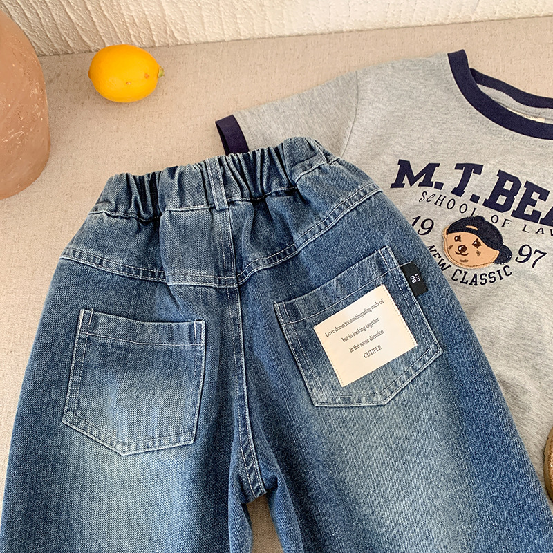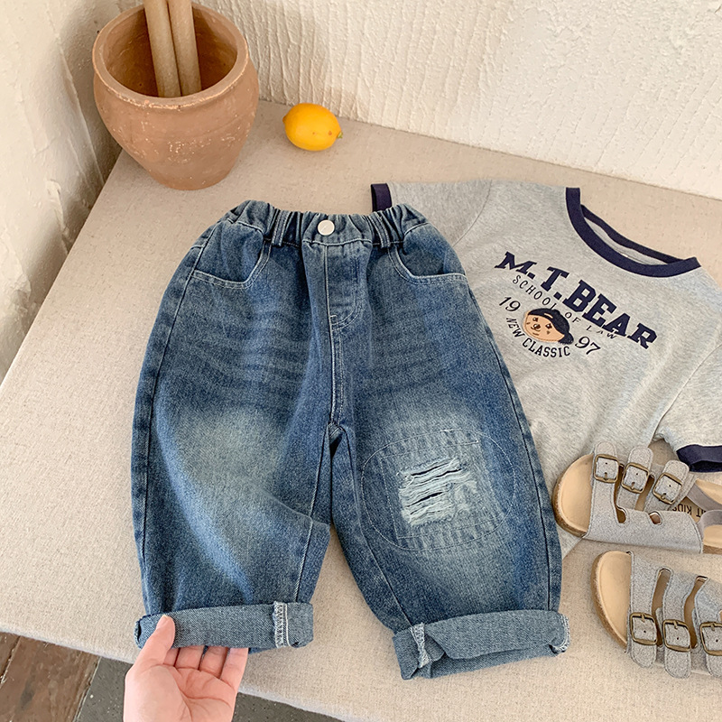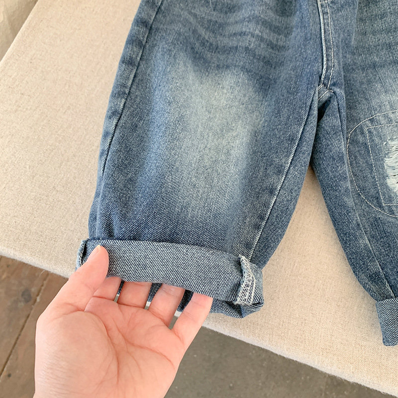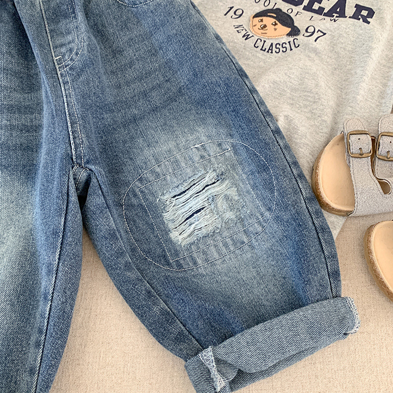 어린이 청바지 2025 천 및 설탕 봄 새 소년 패치 캐주얼 바지 아기 구멍 유행 바지스토어 가기