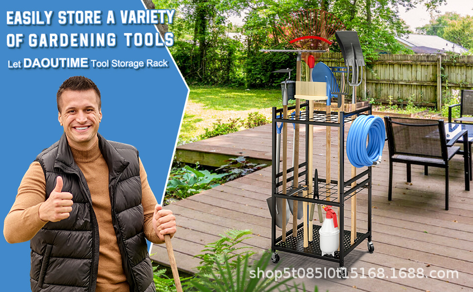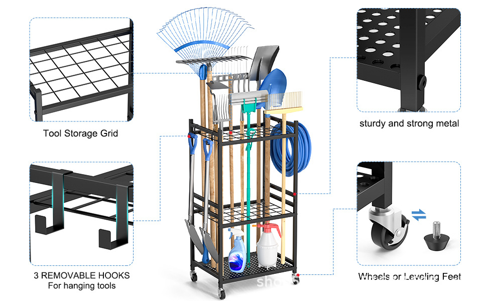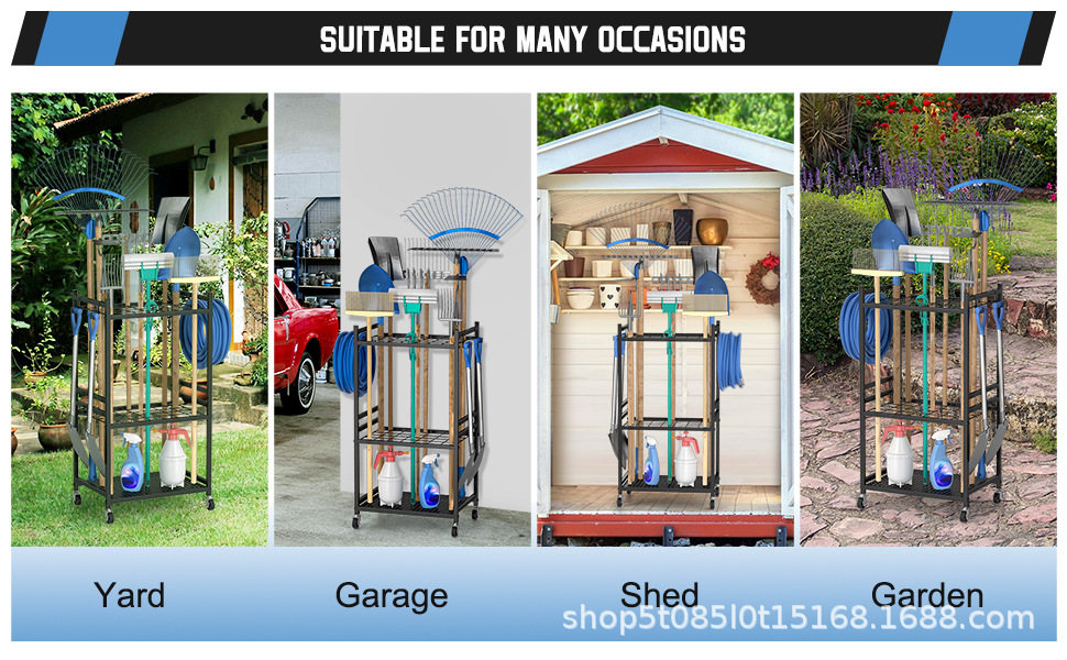 국경 간 코트야드 도구 랙 아마존 이동식 심기 기구 스토리지 랙 가든 배열 스토리지 랙