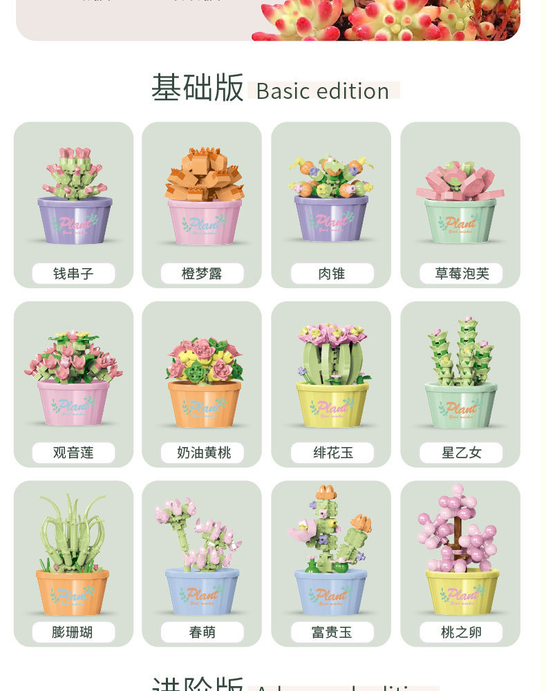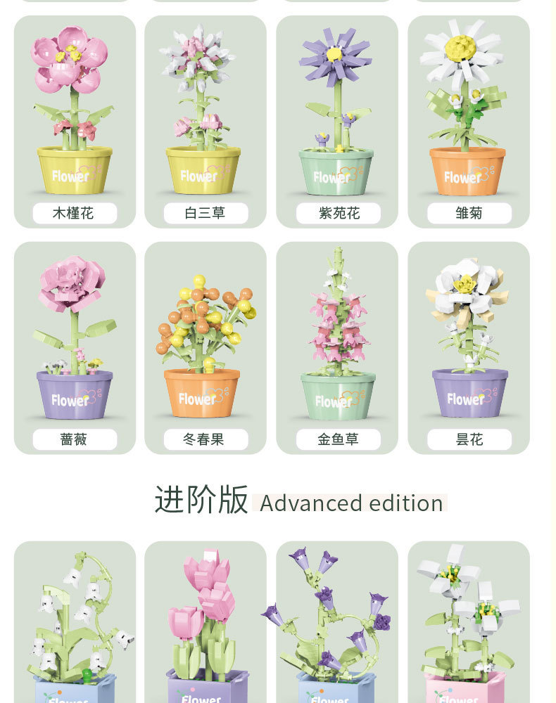 레고 식물 빌딩 블록 꽃 어린이 퍼즐 조립 된 다육 식물 작은 입자 소녀를위한 장난감 선물스토어 가기