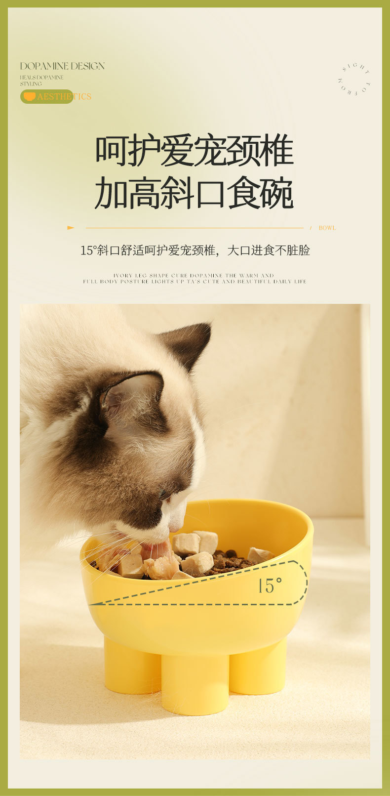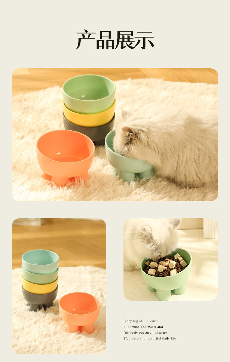 고양이 사발 목 보호 사발 코끼리 다리 대형 구경 고양이 식품 분지 안티 노크 애완 동물 그릇 마카롱 컬러 애완 동물 용품 식품 용품
