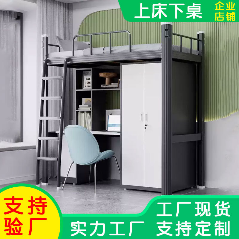 스틸 아파트 침대 침대 낮은 테이블 조합 침대 학생 기숙사 높은 침대 바닥 등반 사다리 철 더블 레이어 직원 침대