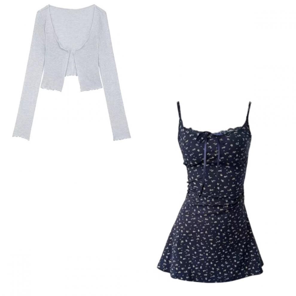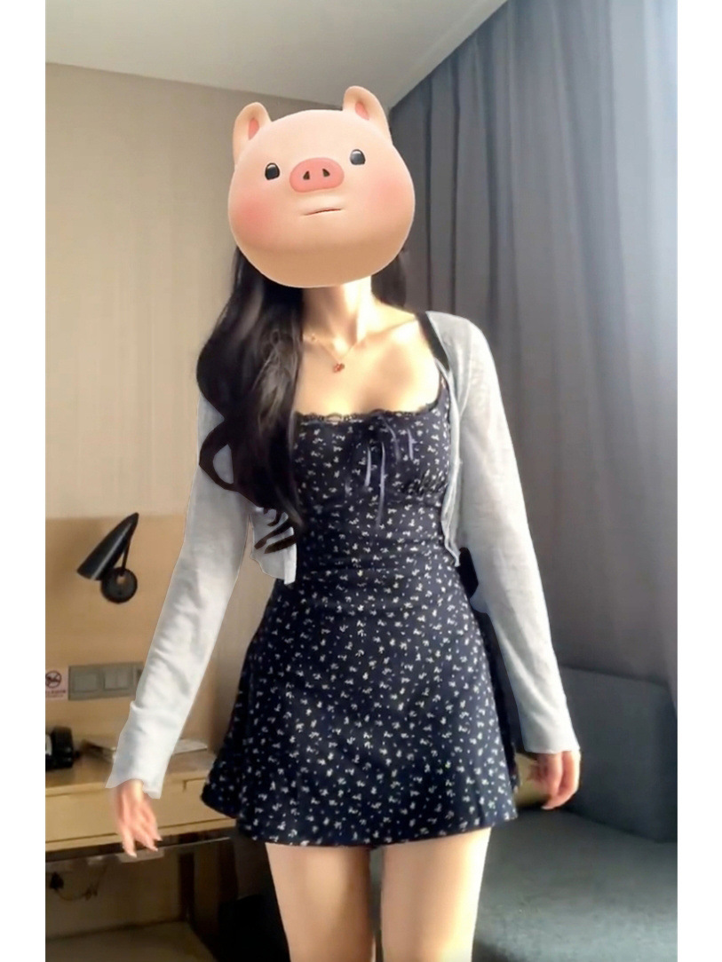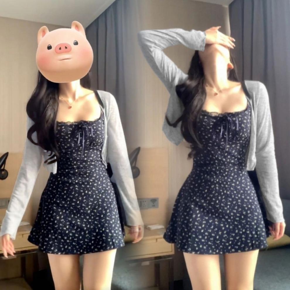여름 프랑스 블루 스트랩 꽃 원피스 어린이 2025 새로운 스타일 작은 기질 핀치 허리 엉덩이 스커트스토어 가기