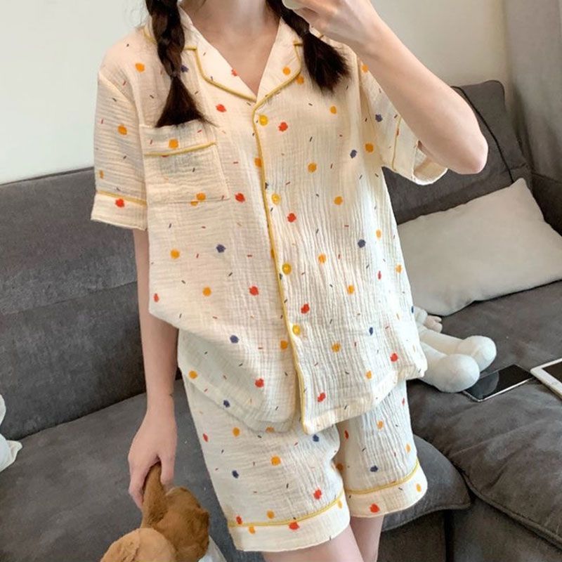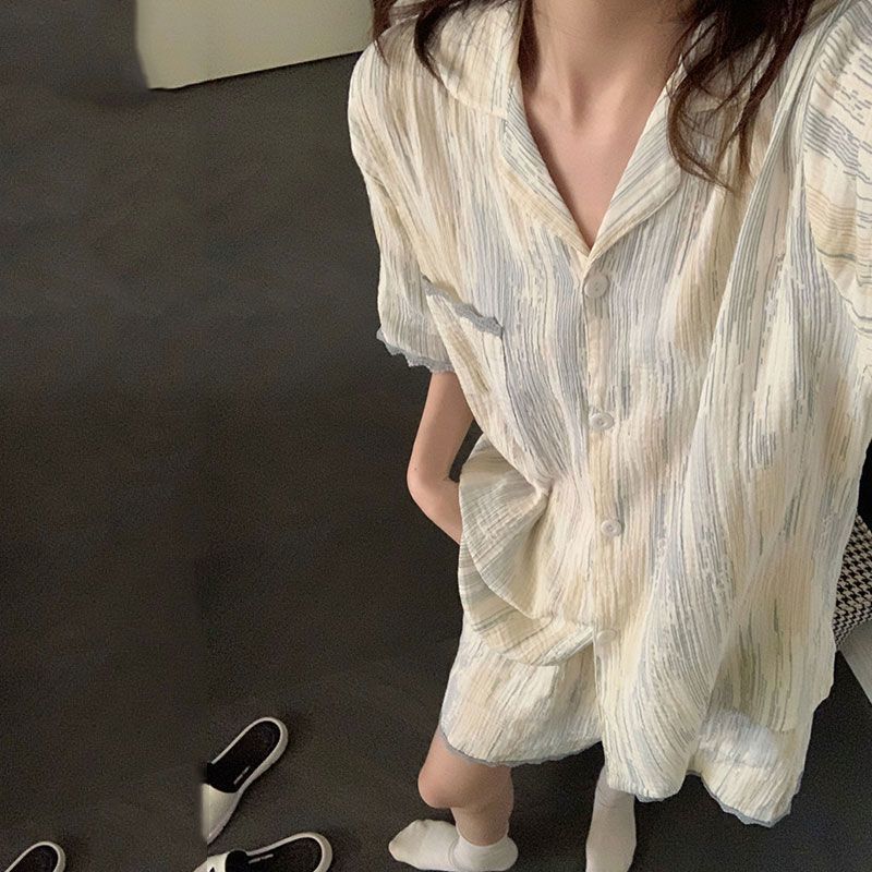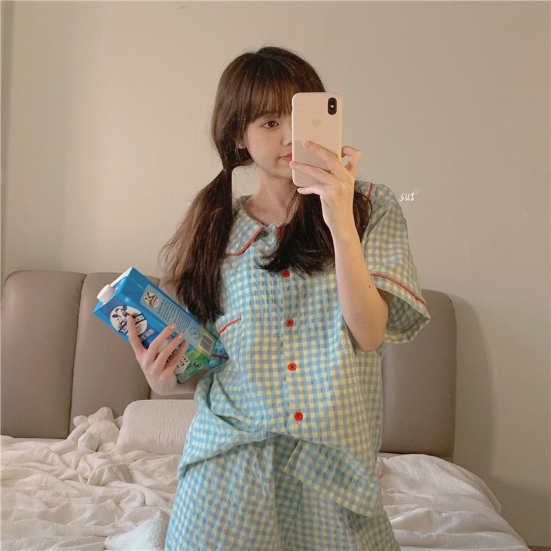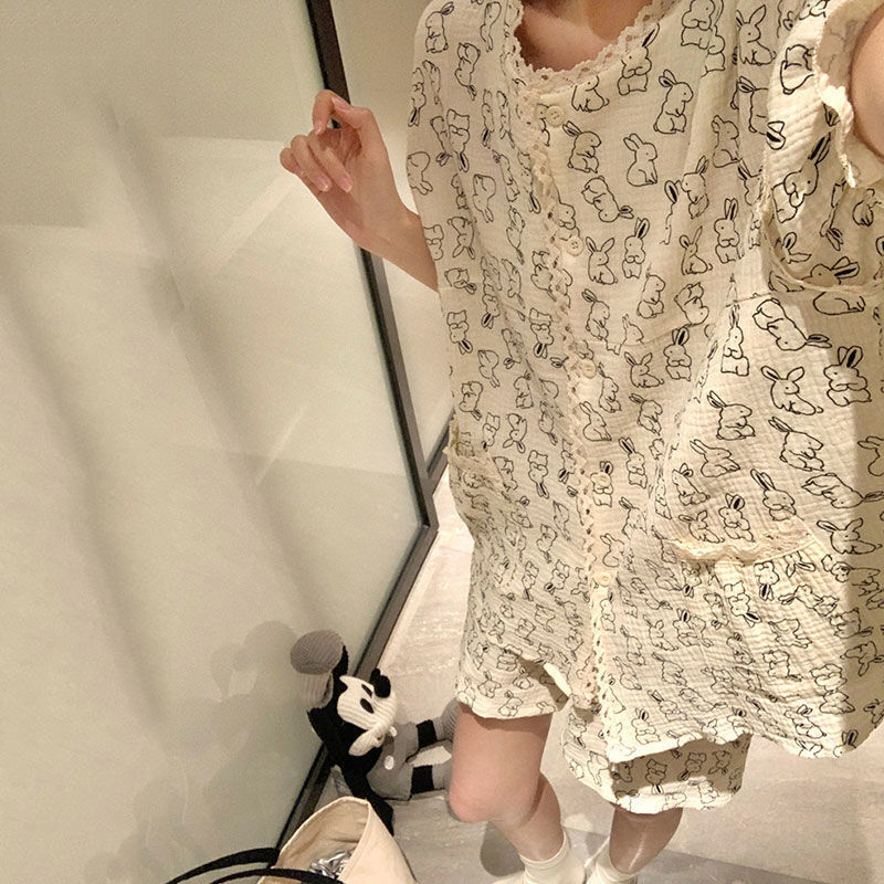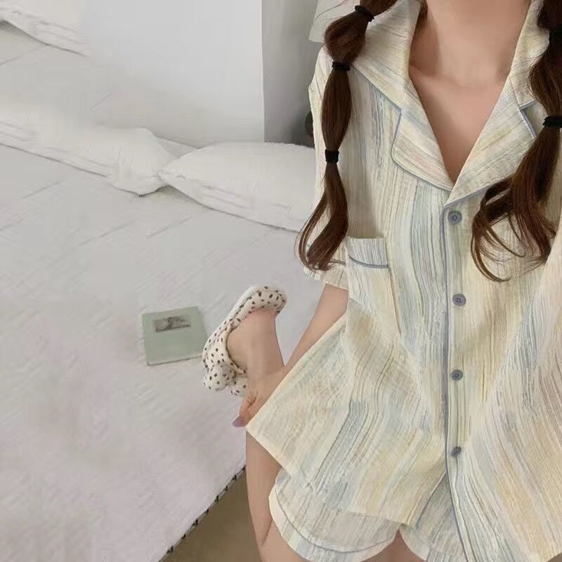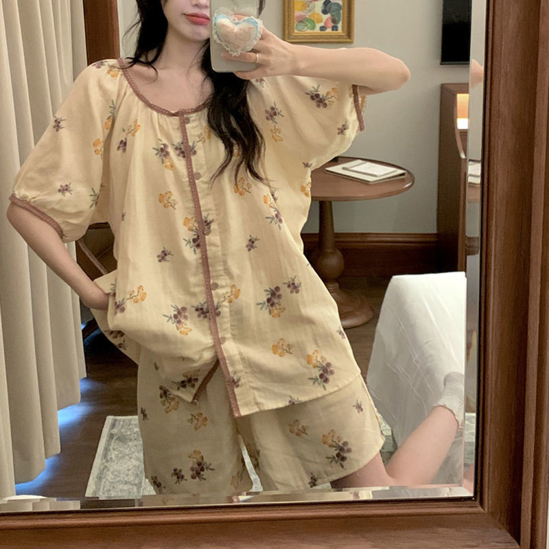 여름 새 스타일 ins 레이스 잠옷 여성 일본 곰 인터넷 연예인 반팔 반바지 귀여운 홈웨어 세트스토어 가기