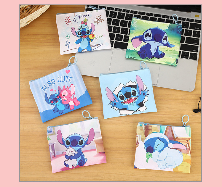 스티치 PU 동전 지갑 릴로와 스티치 학생 카드 가방 보관 가방 동전 가방 소녀 스티치 가방 도매스토어 가기