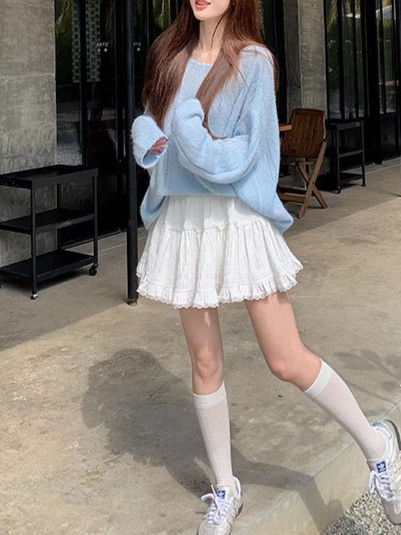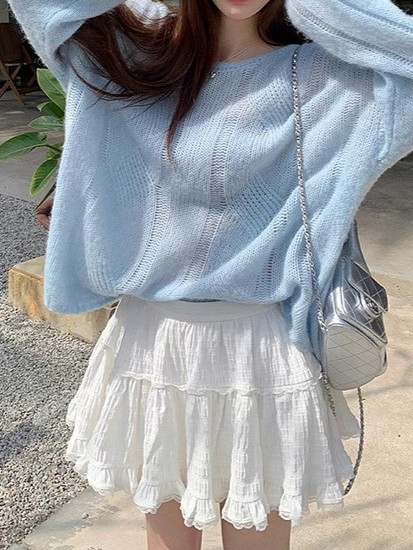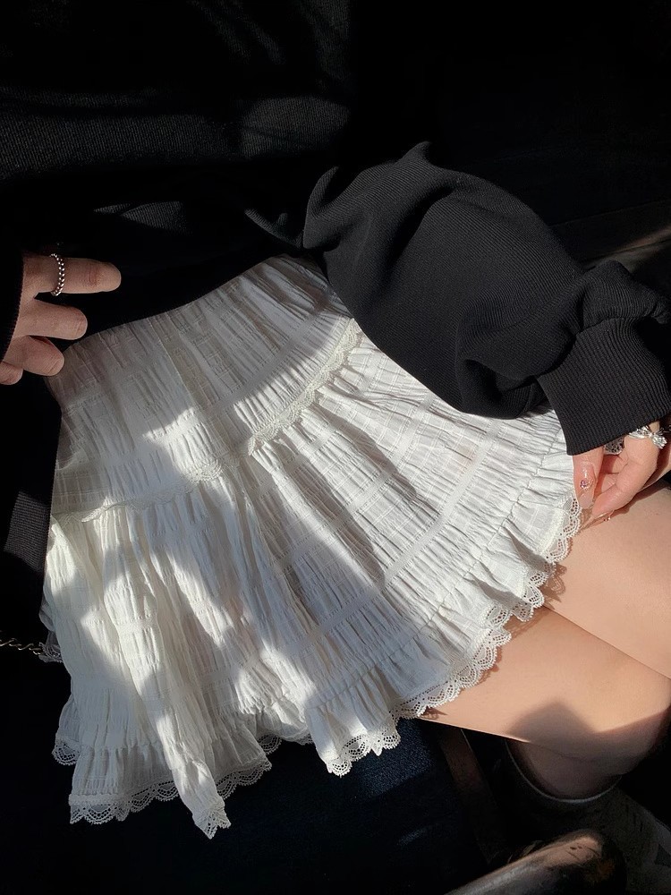 장 베이 베이 아이 벨 레이스 스티칭 첫 사랑 케이크 미니 스커트 캐주얼 다목적 탄성 허리 스커트
