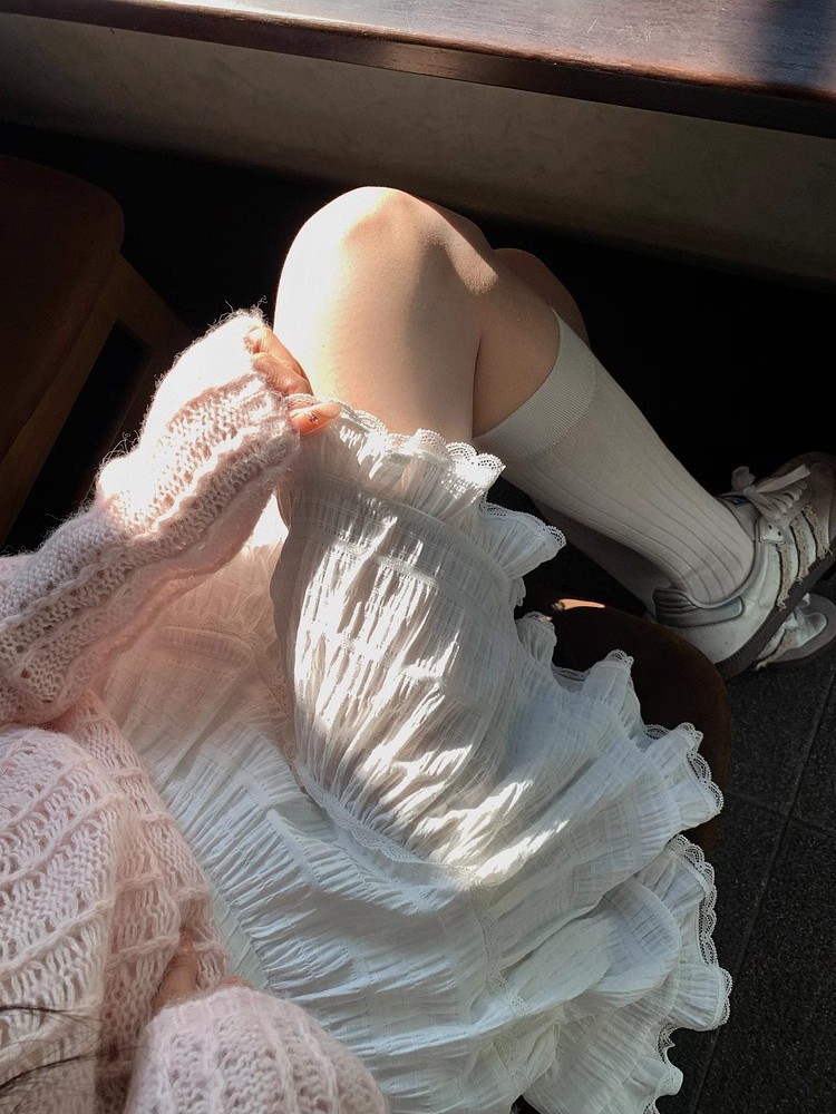 장 베이 베이 아이 벨 레이스 스티칭 첫 사랑 케이크 미니 스커트 캐주얼 다목적 탄성 허리 스커트스토어 가기