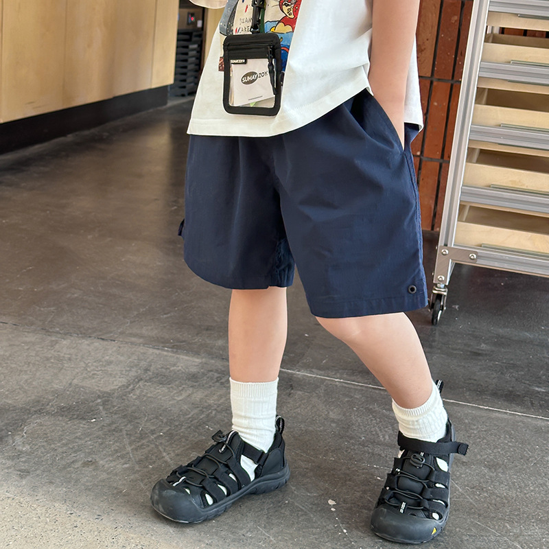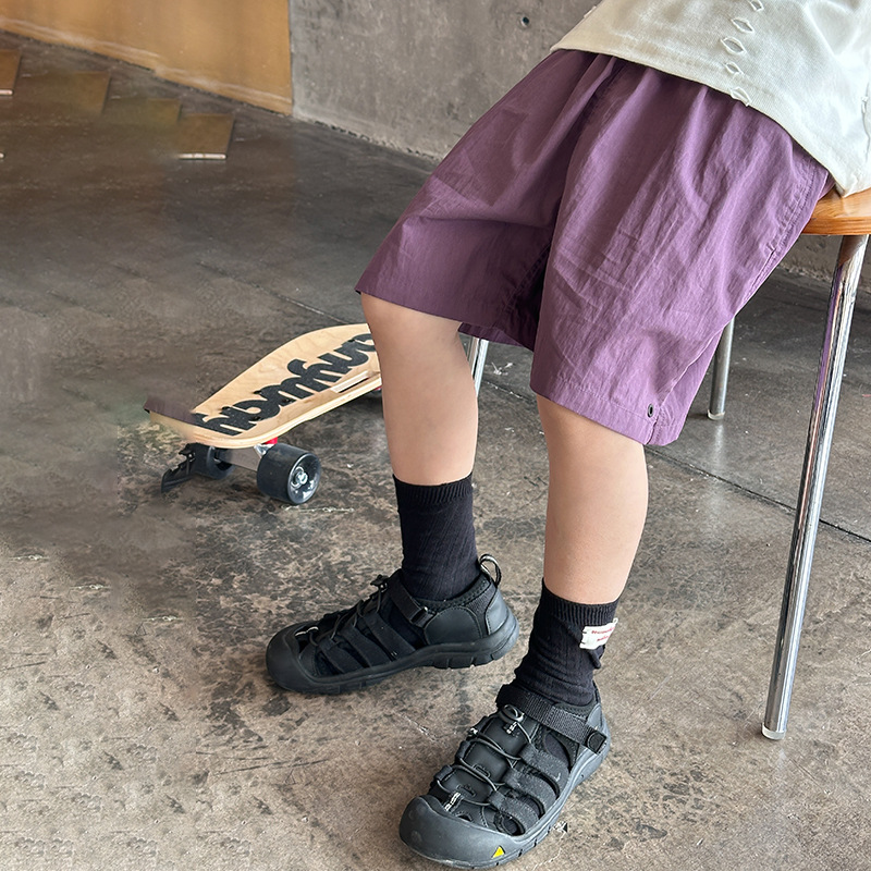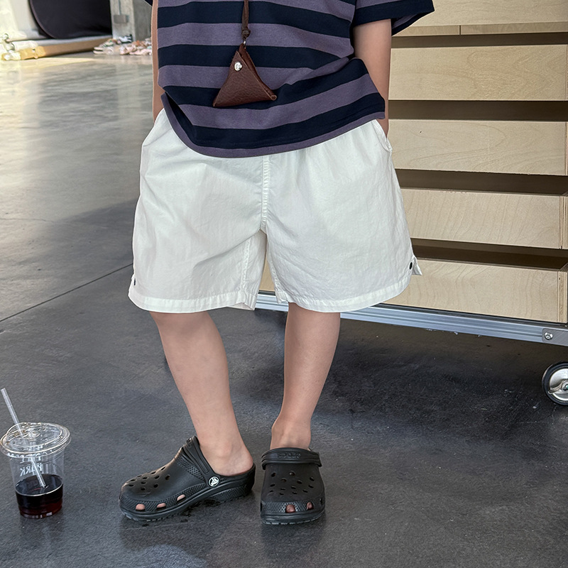 Emo Beibei 어린이 2025 년 여름 잘 생긴 네일 빈 세척 코튼 캐주얼 반바지 남녀 소년을위한 올 매치 루즈 반바지