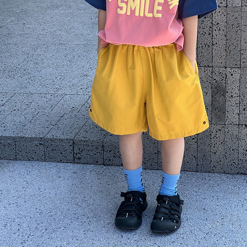 Emo Beibei 어린이 2025 년 여름 잘 생긴 네일 빈 세척 코튼 캐주얼 반바지 남녀 소년을위한 올 매치 루즈 반바지스토어 가기