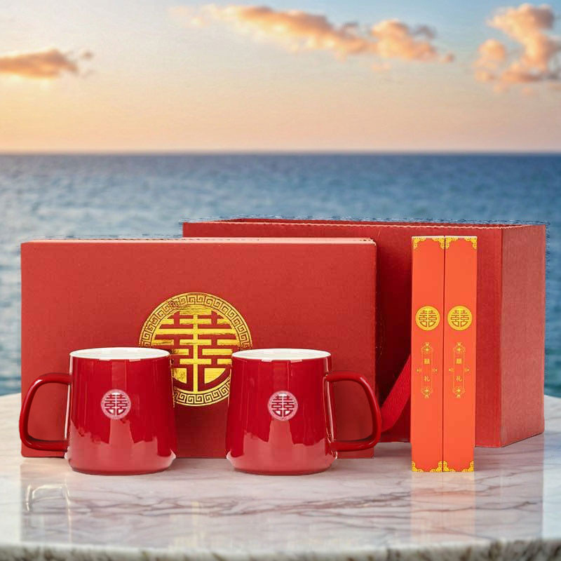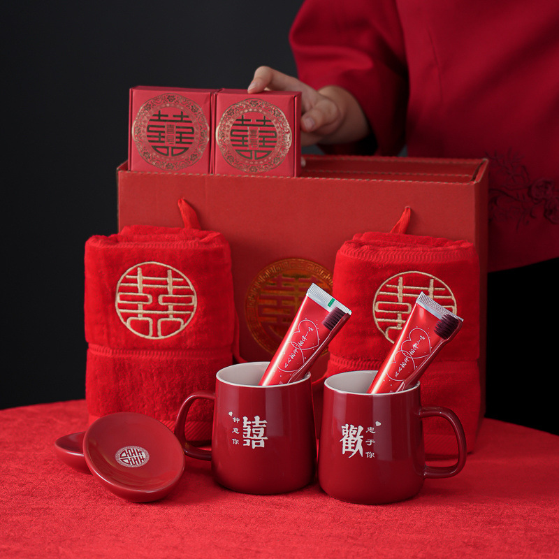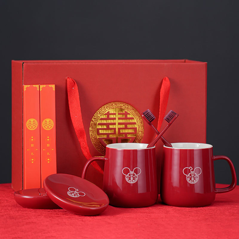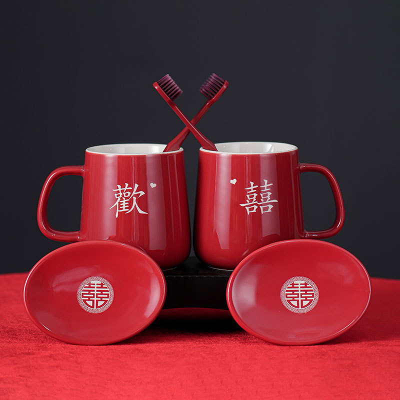 웨딩 양치질 컵 한 쌍의 세라믹 세척 컵 하이 엔드 세트 레드 신부와 신랑 결혼식 축제 커플 컵