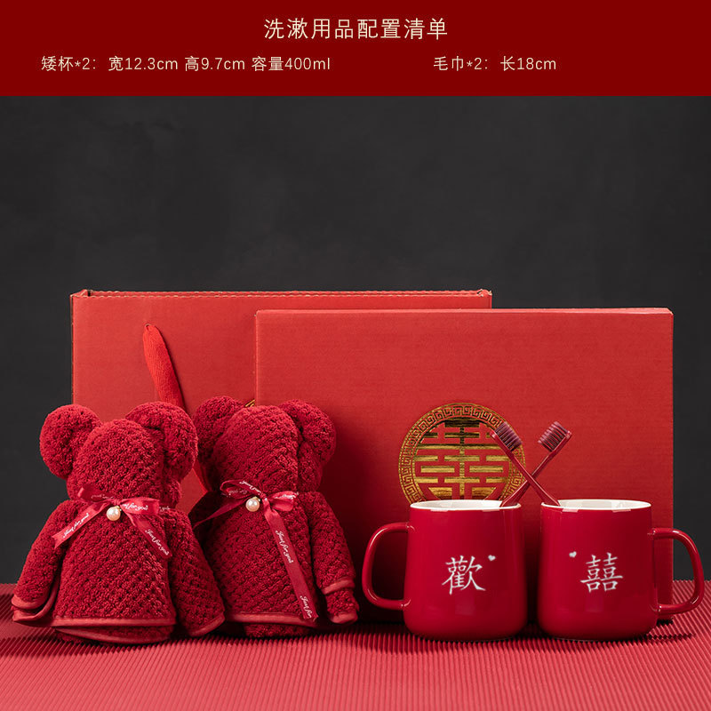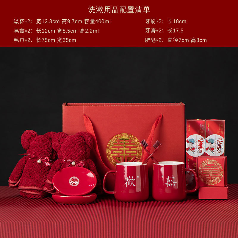 • 짧은 빨간색 손잡이 사랑의 마음 컵 Yuanxi 비누 상자 곰 수건 치약 + 선물 상자