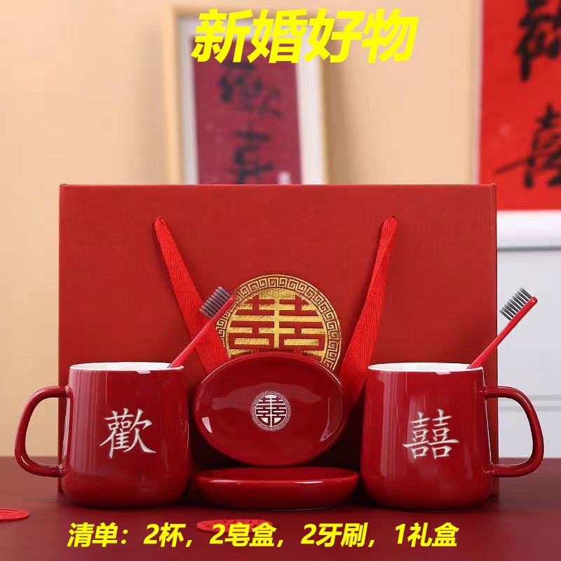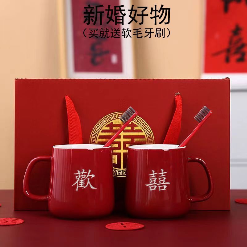 웨딩 양치질 컵 한 쌍의 세라믹 세척 컵 하이 엔드 세트 레드 신부와 신랑 결혼식 축제 커플 컵스토어 가기