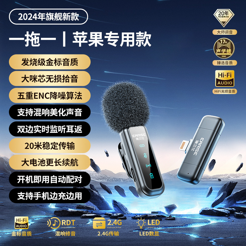 2025 새로운 무선 마이크 칼라 클립 휴대 전화 라이브 앵커 비디오 녹화 라디오 1 드래그 2 vlog