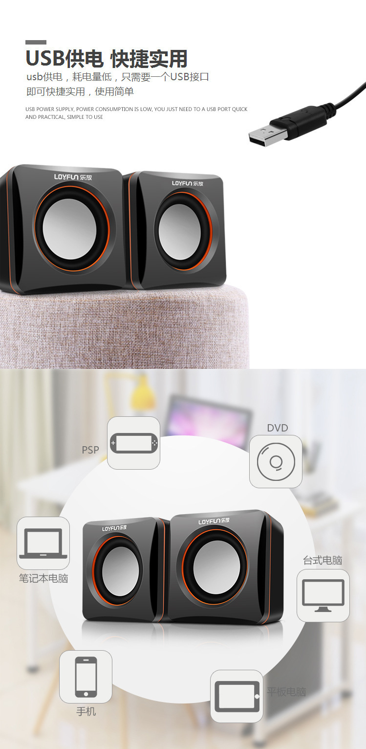 LOYFUN乐放 LF-701迷你办公小音箱 笔记本台式电脑音响 带低音炮