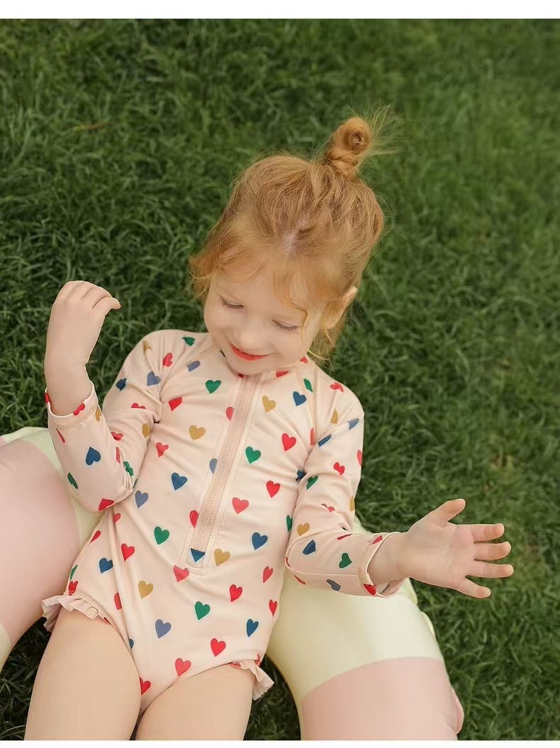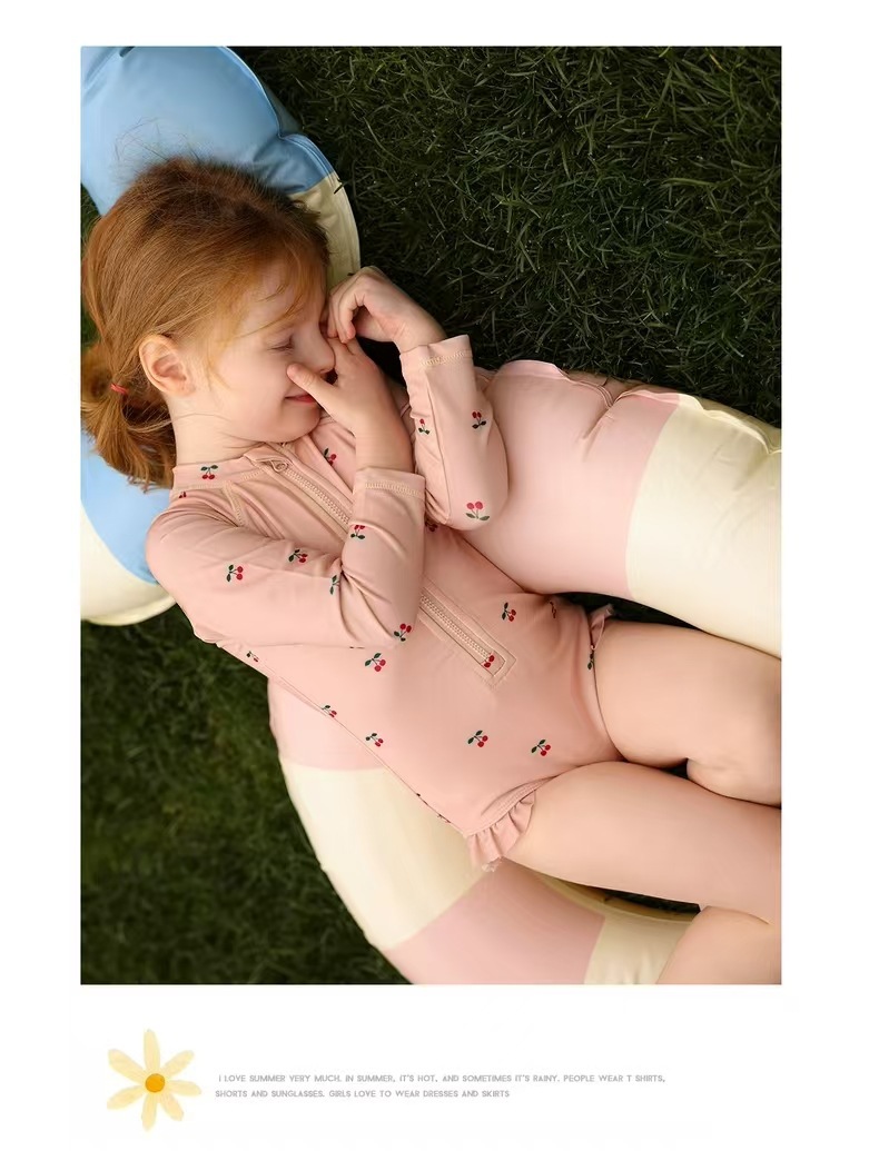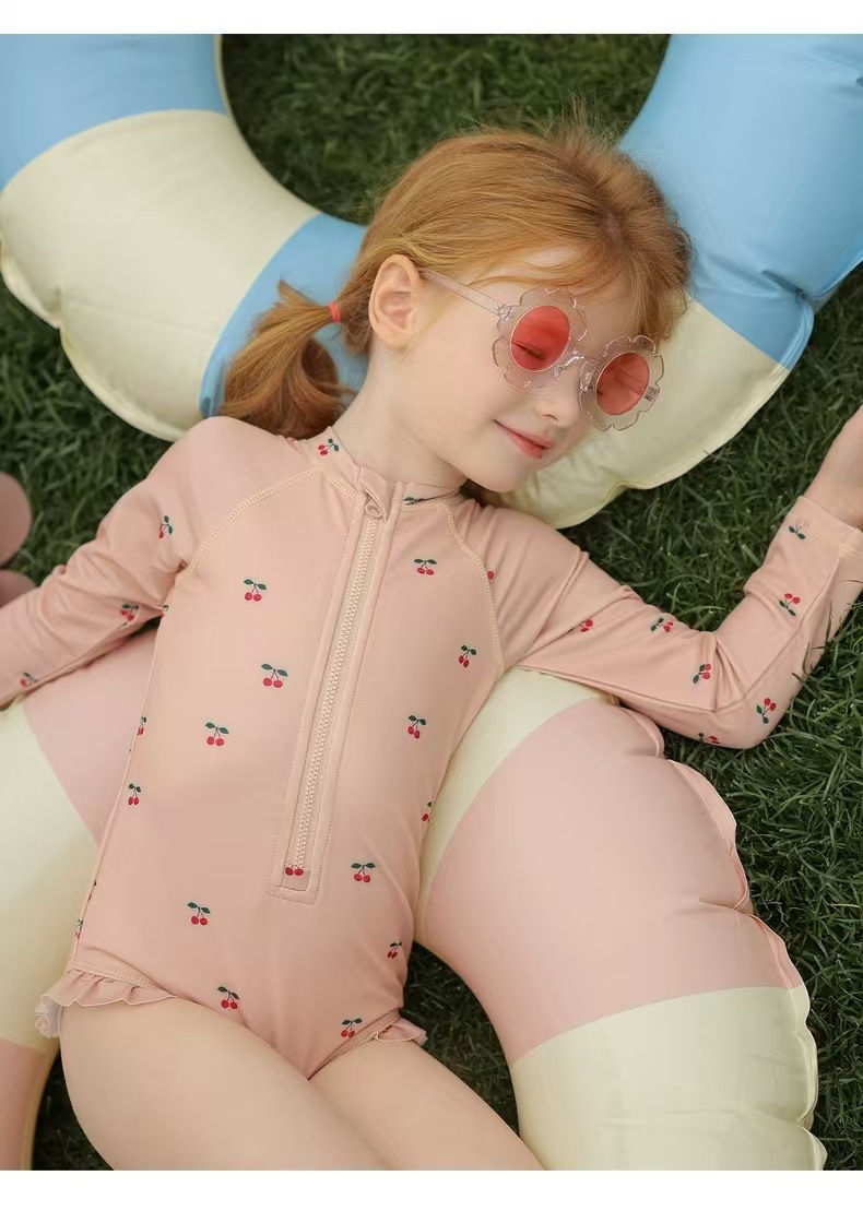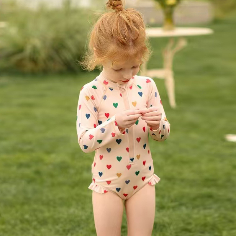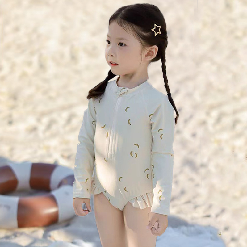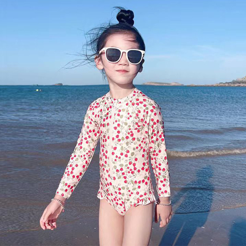 어린이 수영복 소녀 긴팔 선 스크린 새로운 도착 한국 소녀 아기 서양식 비치 휴가 온천 수영복 여름스토어 가기