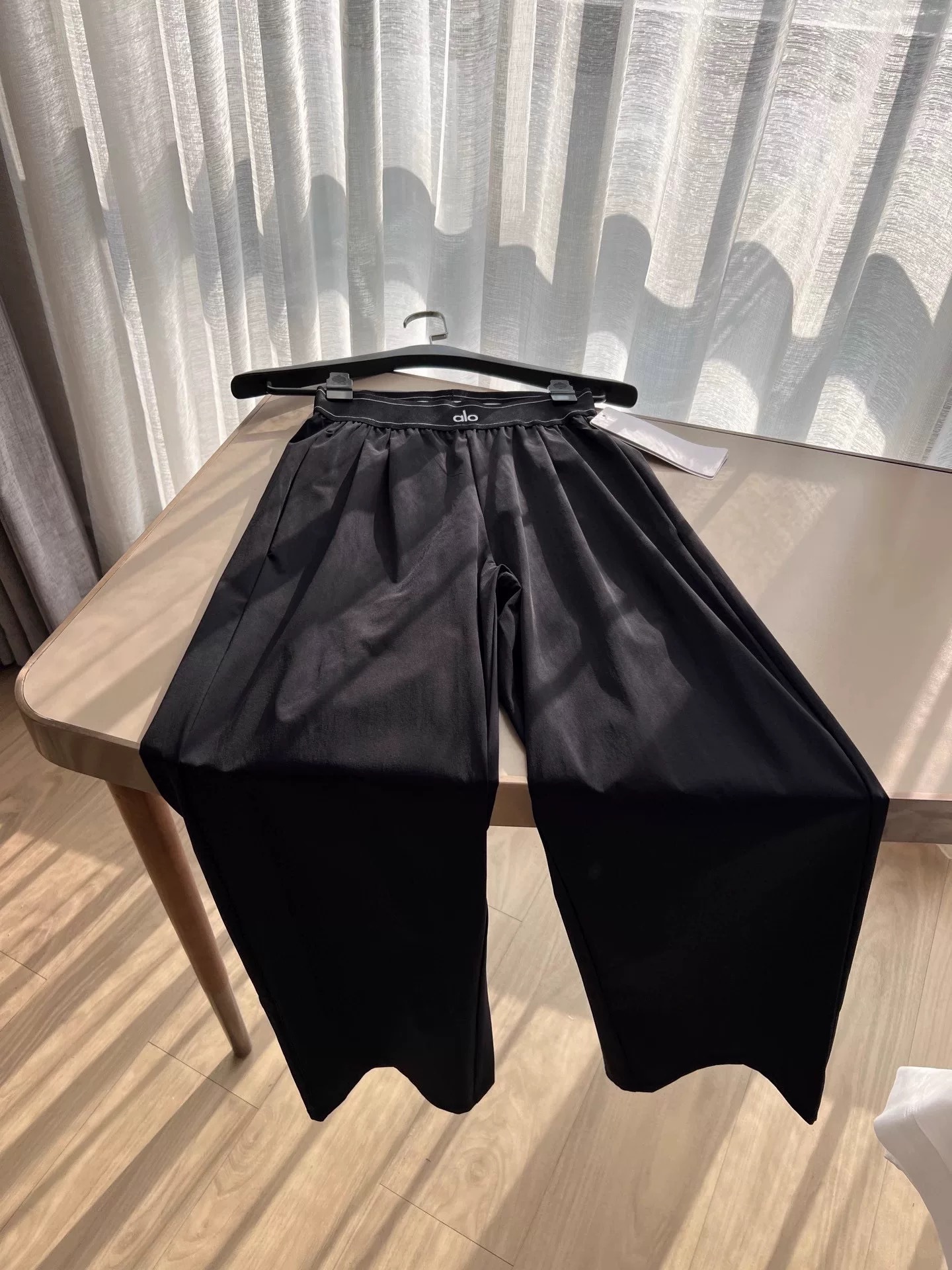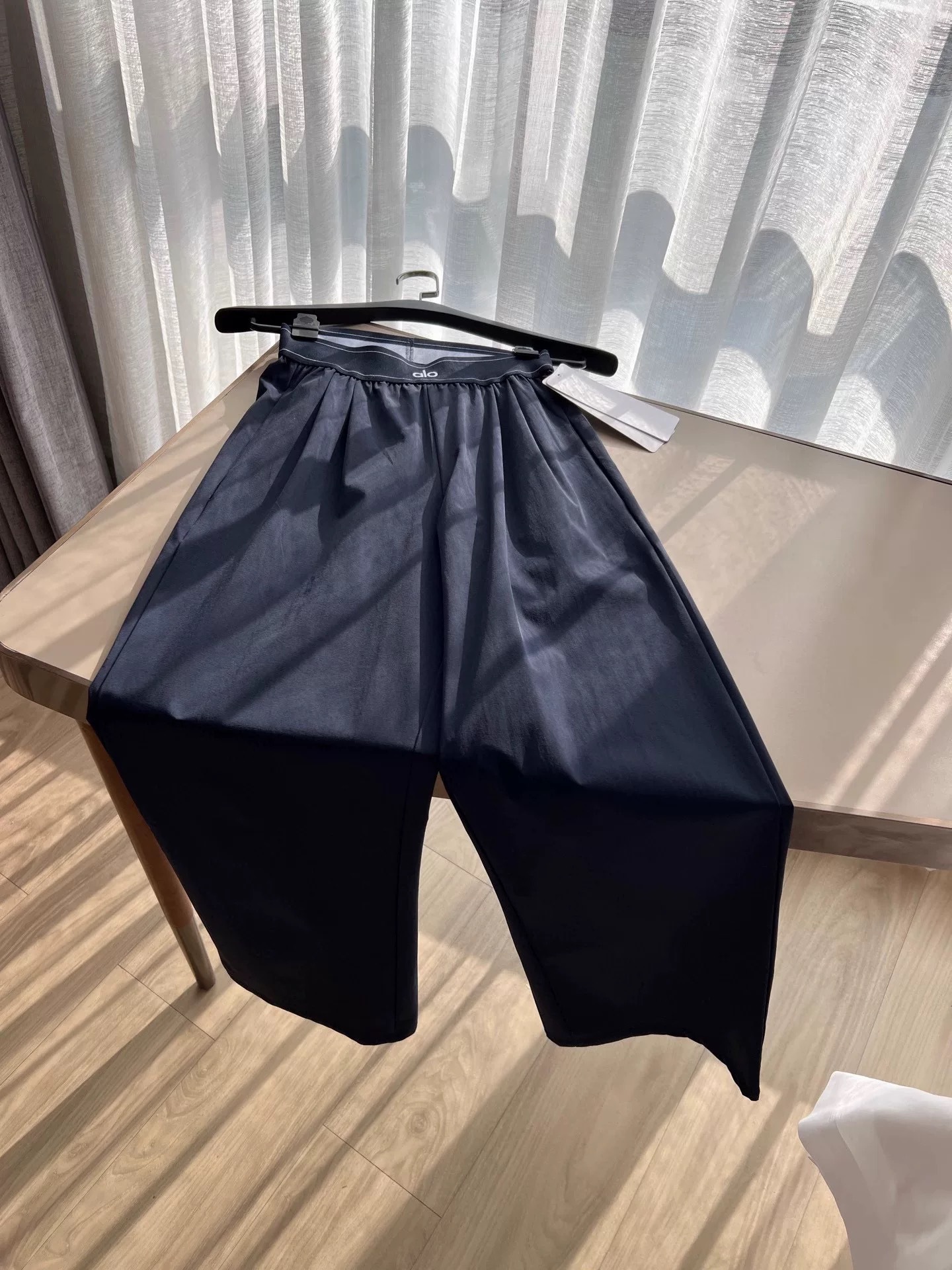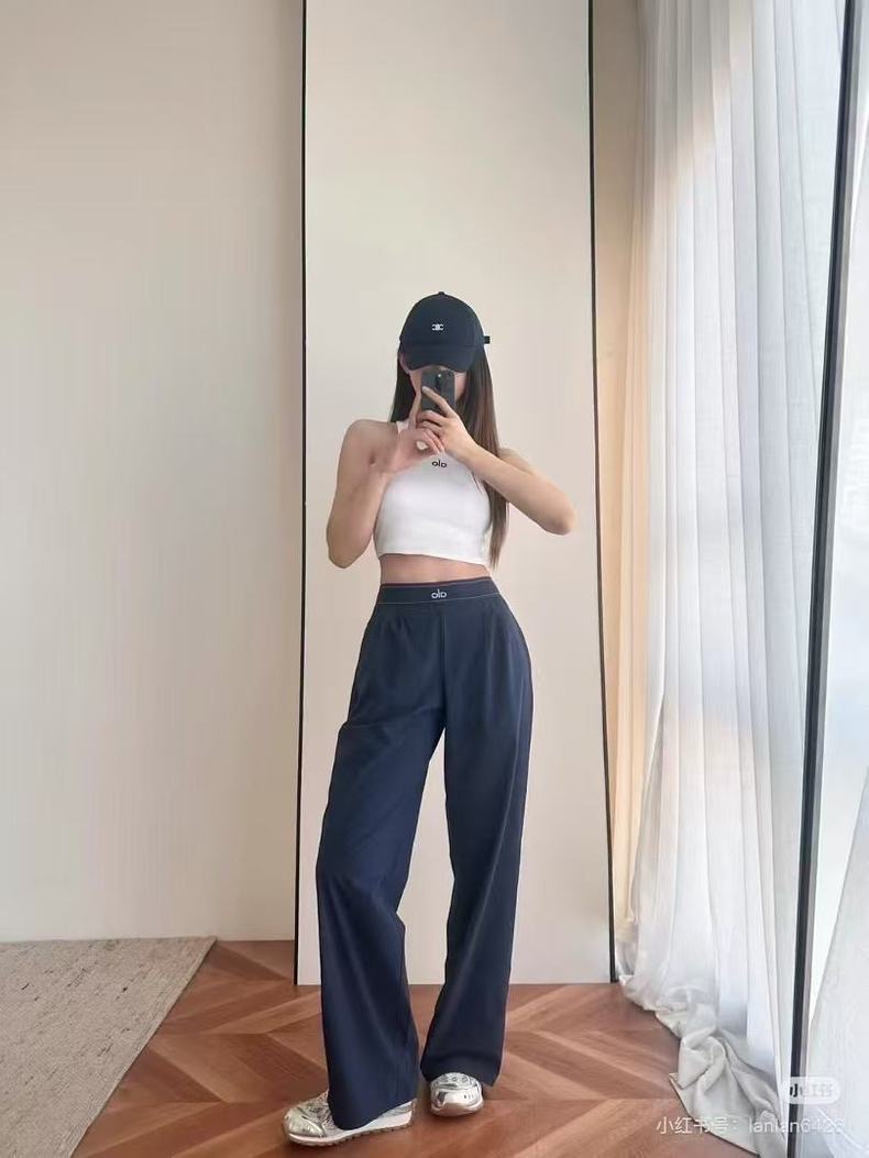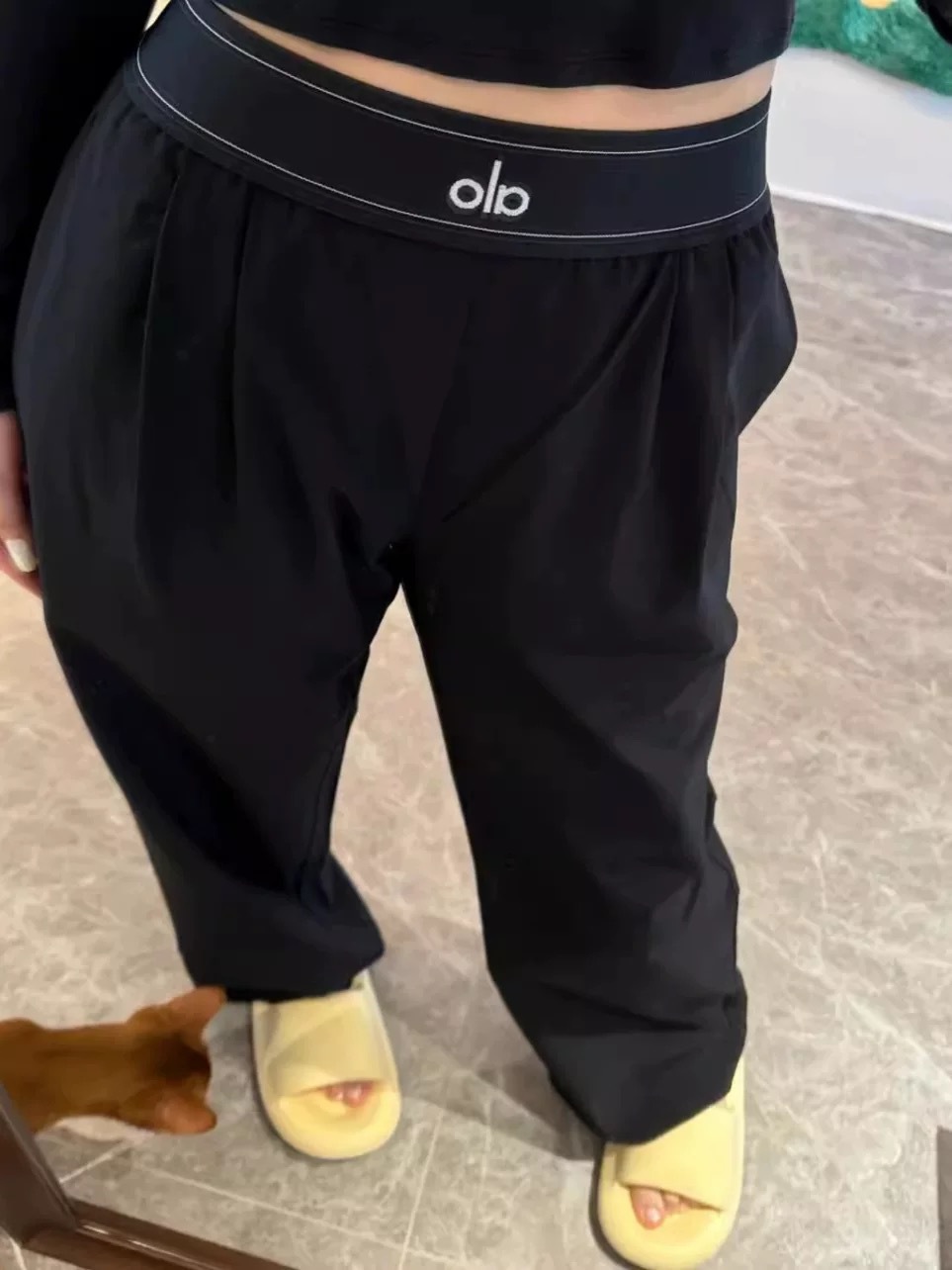 Alo 새로운 캐주얼 스포츠 바지 여성 리본 높은 허리 넓은 다리 바지 느슨한 슬리밍 경량 용량 캐주얼 바지