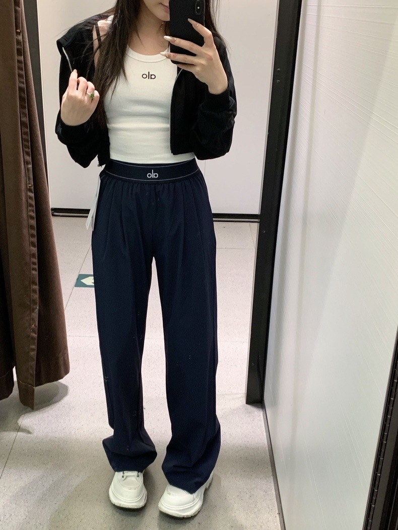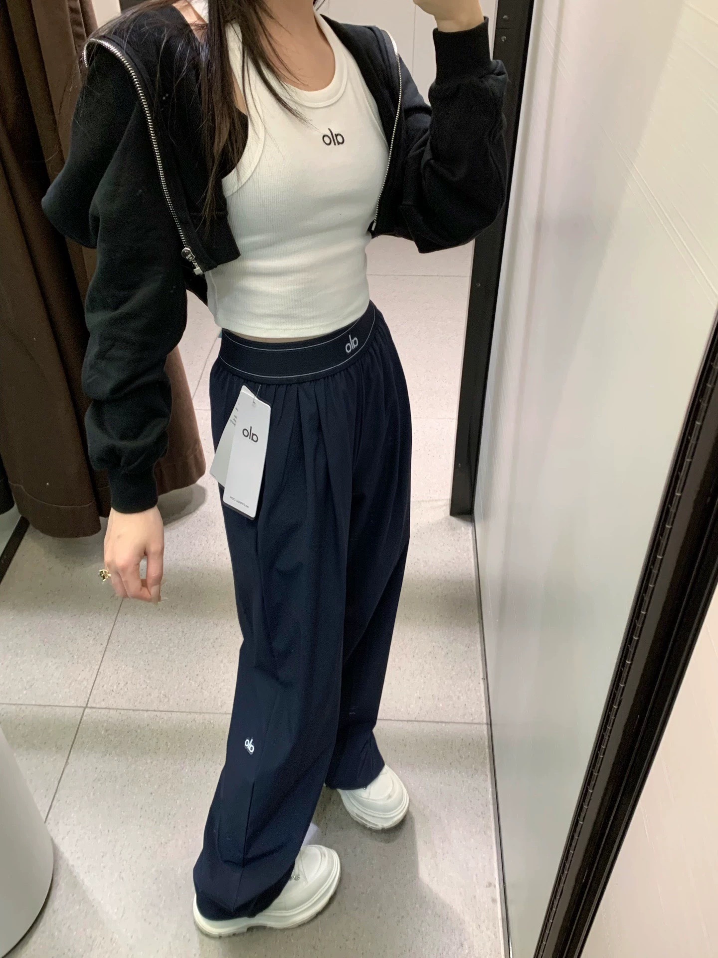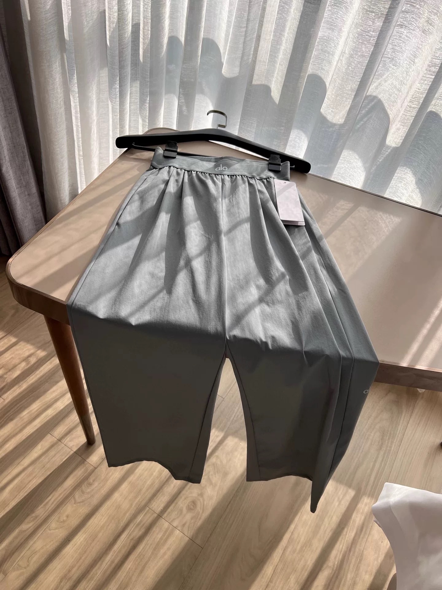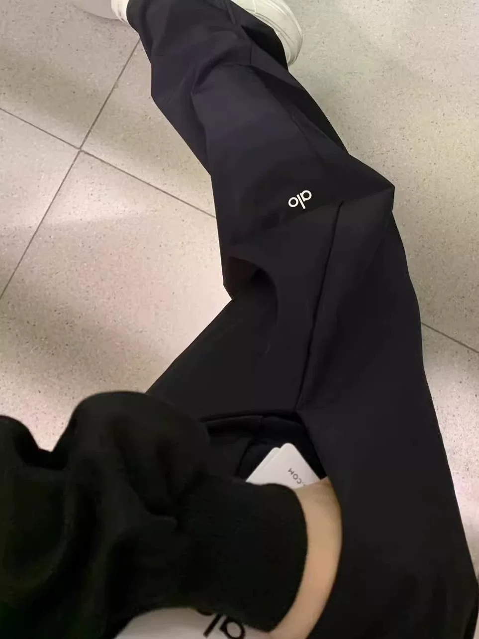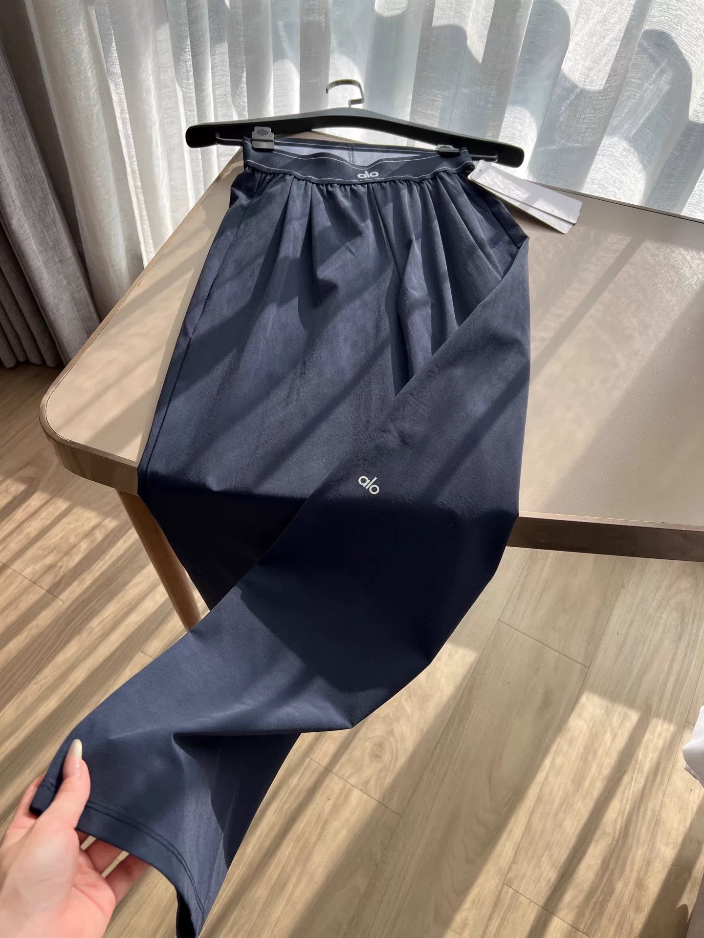 Alo 새로운 캐주얼 스포츠 바지 여성 리본 높은 허리 넓은 다리 바지 느슨한 슬리밍 경량 용량 캐주얼 바지