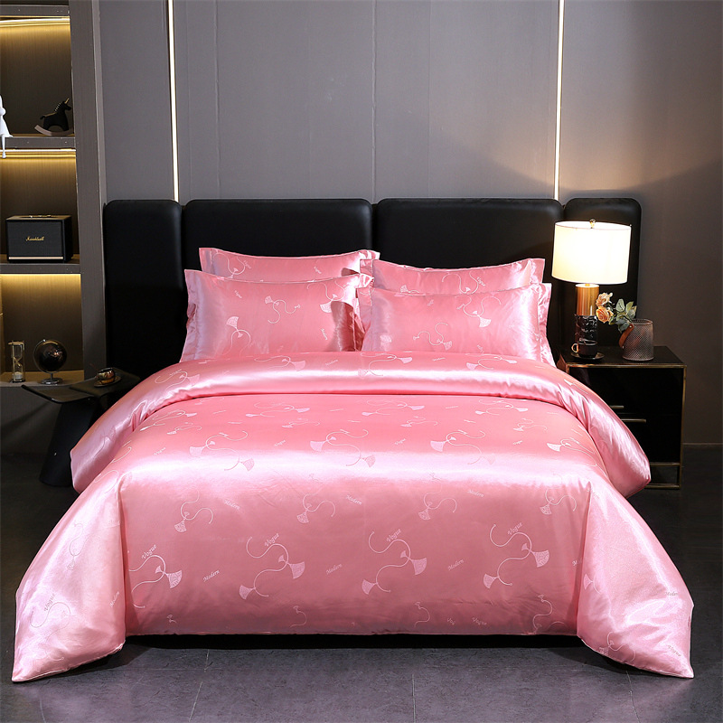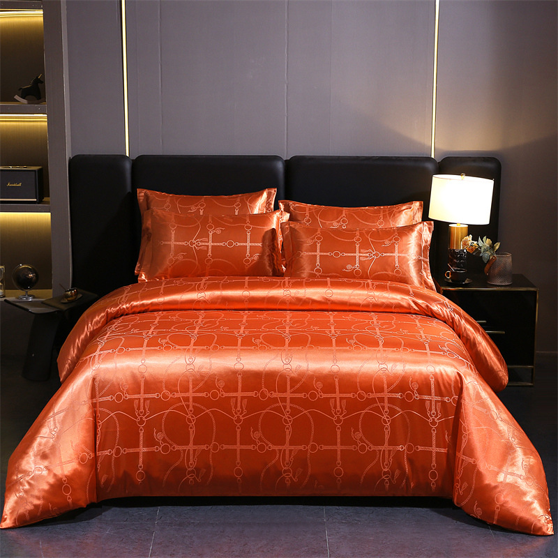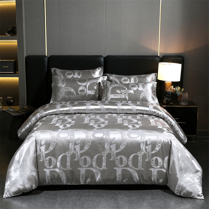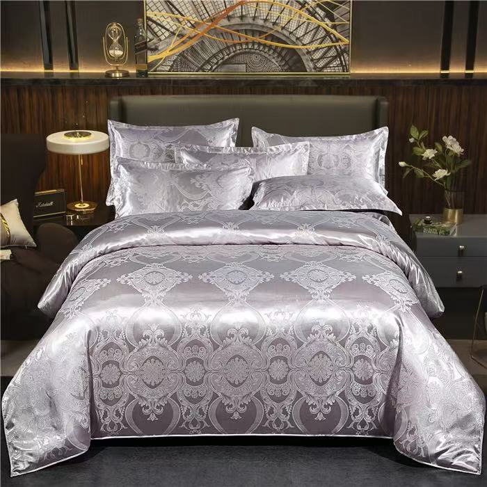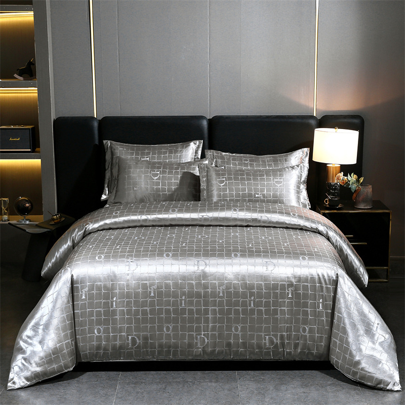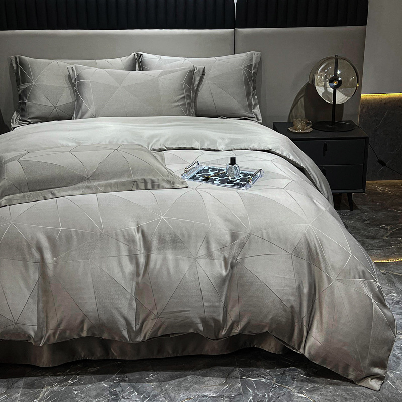 유럽식 라이트 럭셔리 새틴 자카드 4 피스 슈페리어 센스 자카드 퀼트 커버 세탁 실크 침구 키트 도매