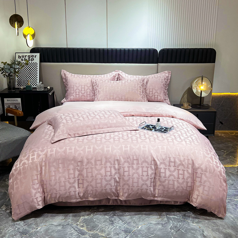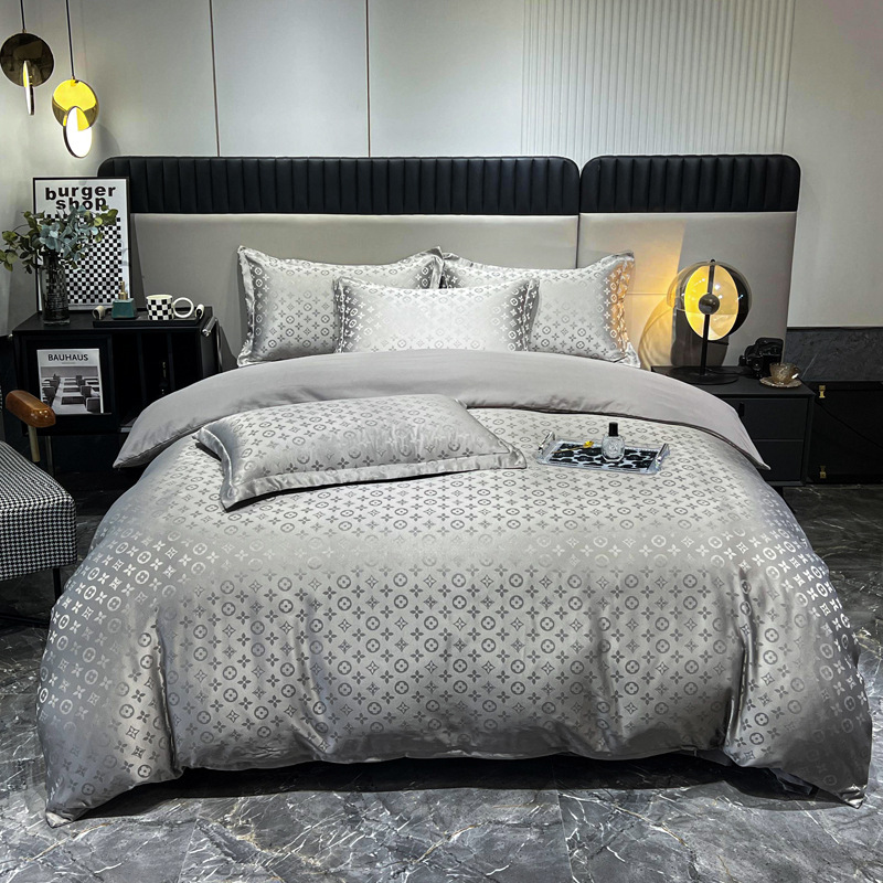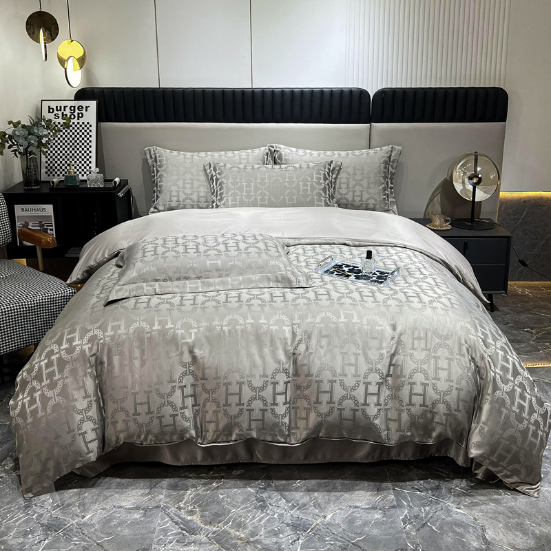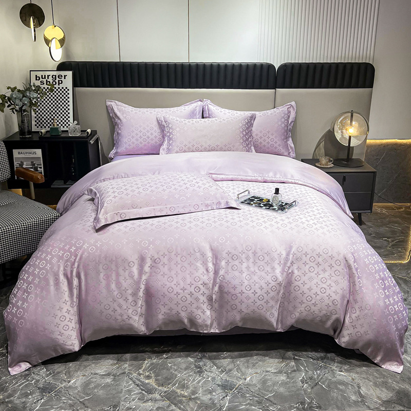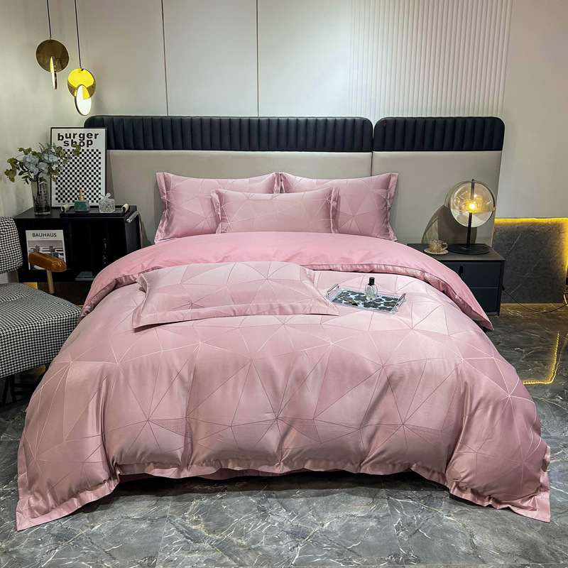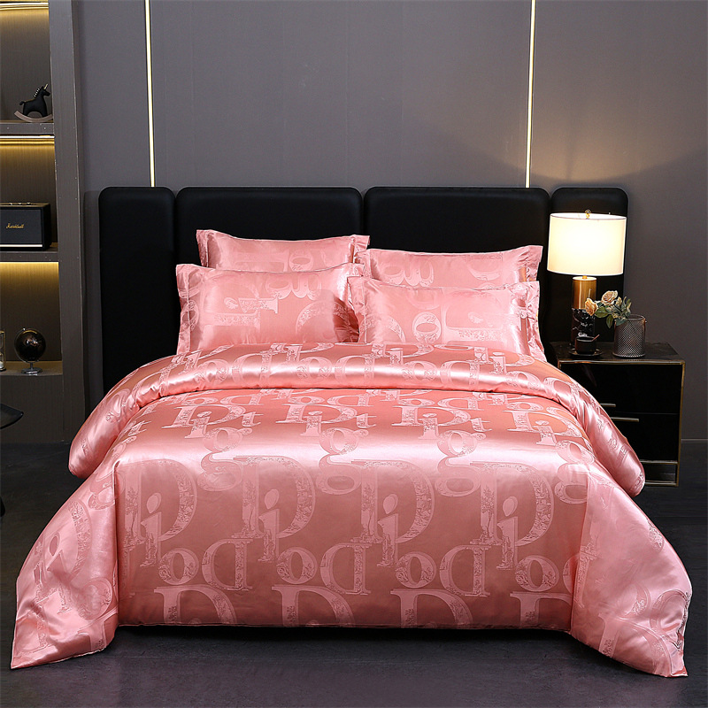 유럽식 라이트 럭셔리 새틴 자카드 4 피스 슈페리어 센스 자카드 퀼트 커버 세탁 실크 침구 키트 도매