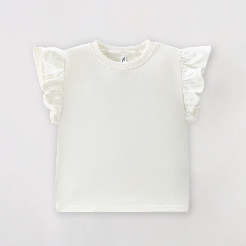 소녀 여름 반팔 티셔츠 순수 코튼 한국 스타일 탑 솔리드 컬러 레이스 슬리브 트렌디 뉴베이스 셔츠
