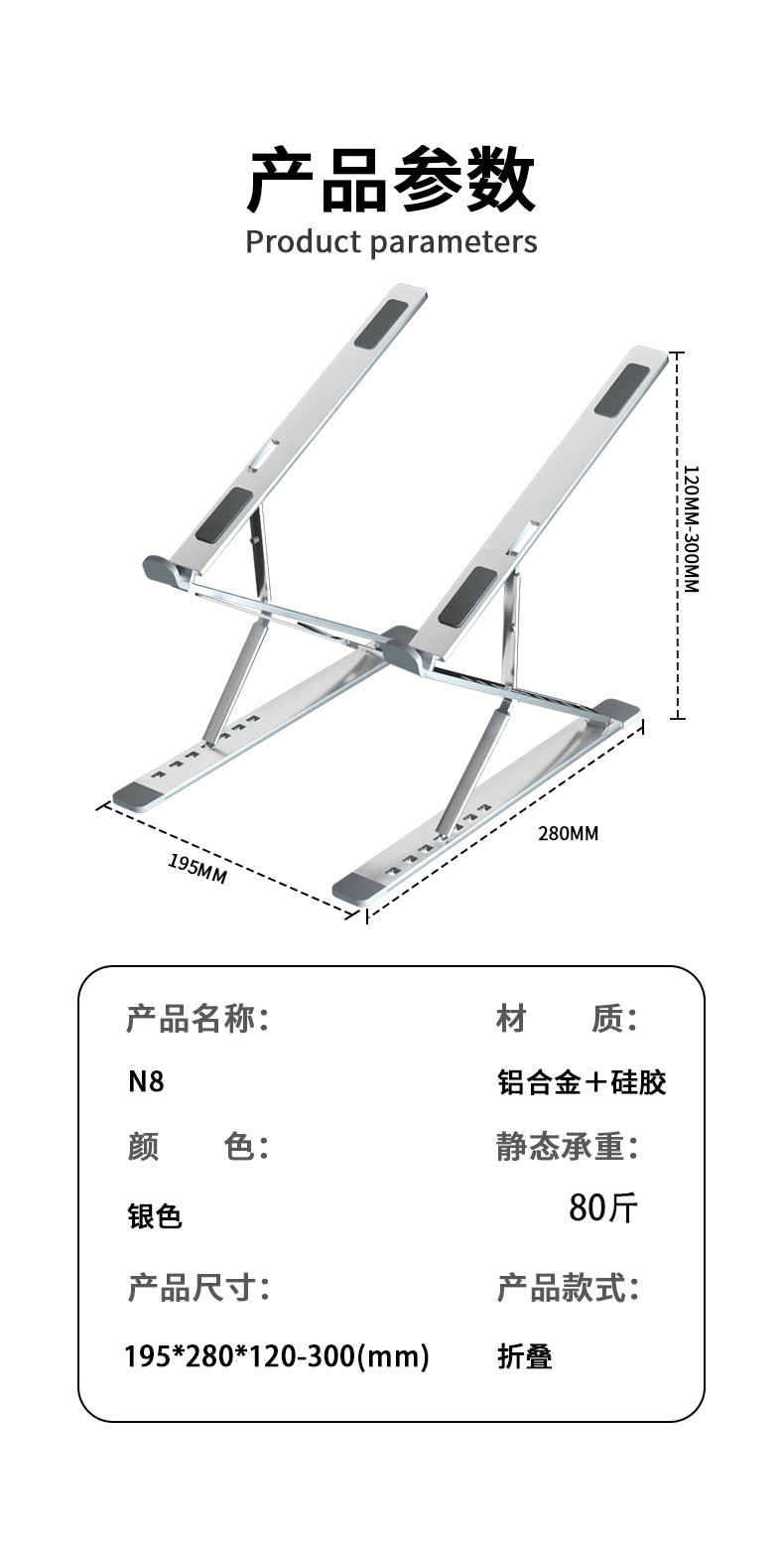 N8 노트북 스탠드 알루미늄 합금 더블 레이어 높은 접이식 저장 휴대용 데스크탑 높은 방열 리프팅