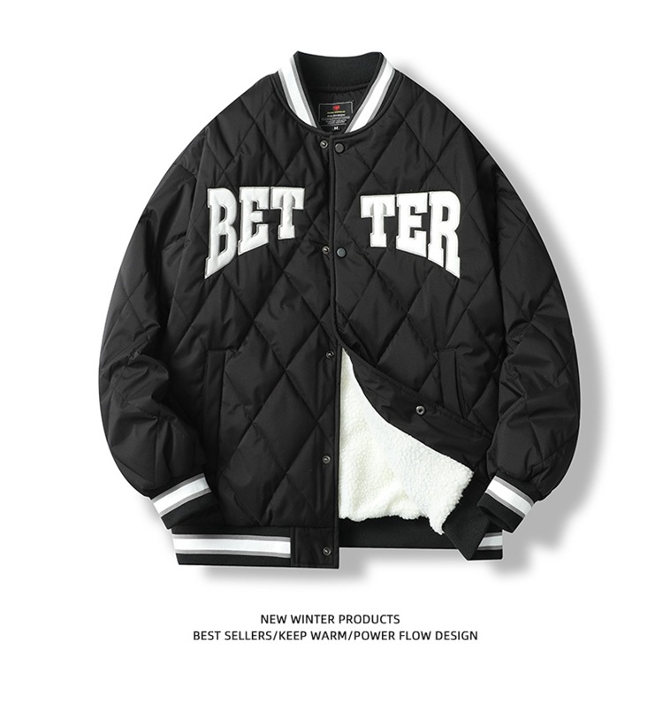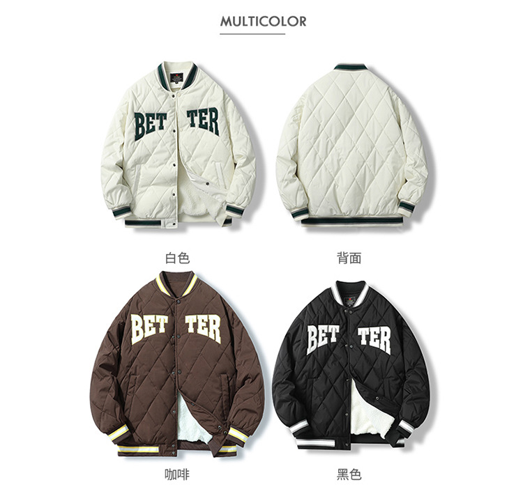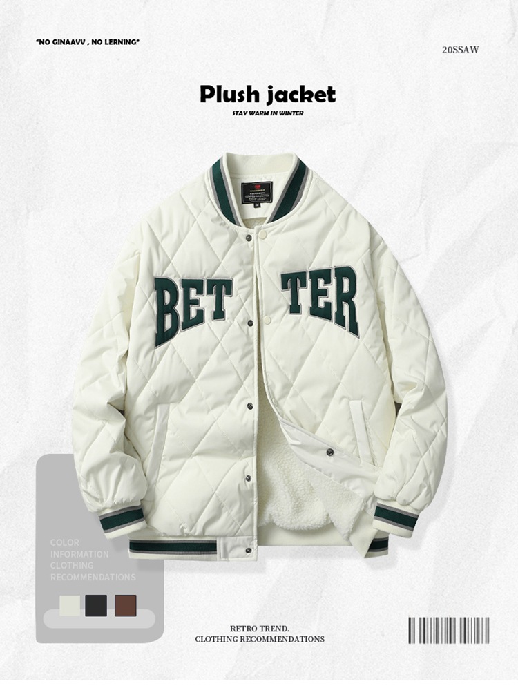 크로스보더 2025 봄, 가을 한국식 루즈 재킷 두꺼운 벨벳 문자 자수 칼라리스 따뜻하고 멋진 야구 유니폼스토어 가기