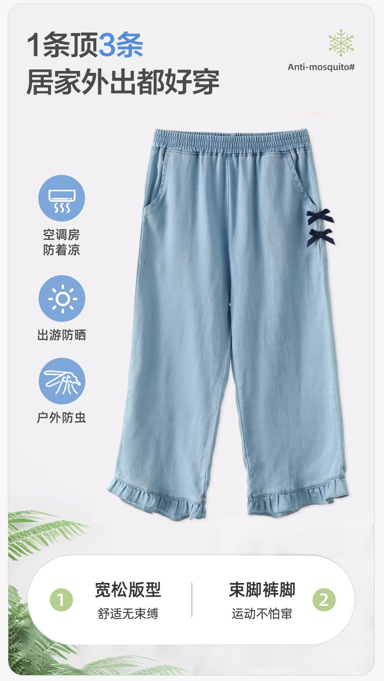 어린이 텐셀 청바지 여름 얇은 Lyocell 통기성 스트레이트 팬츠 소녀 루즈 레이스 바지 아동복스토어 가기